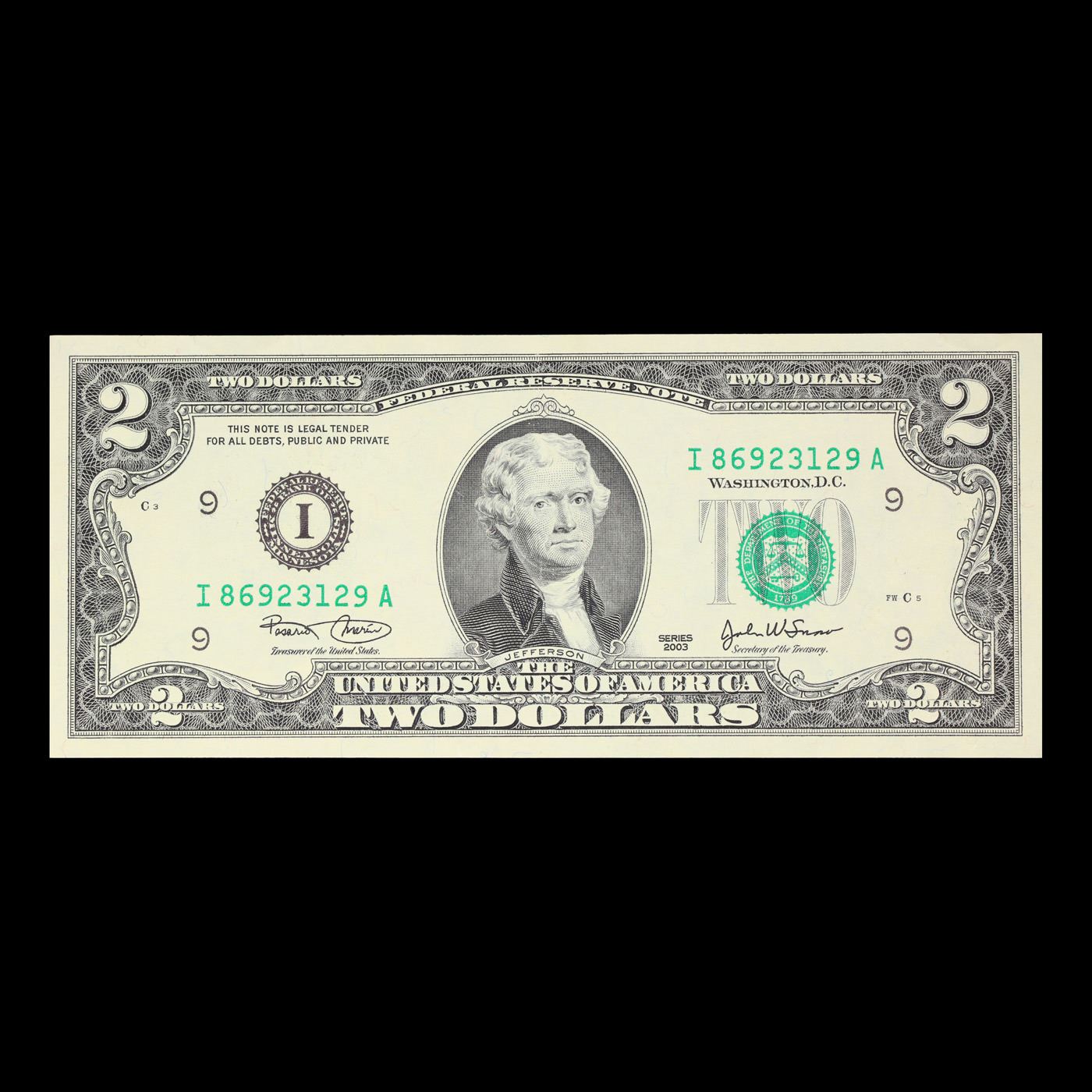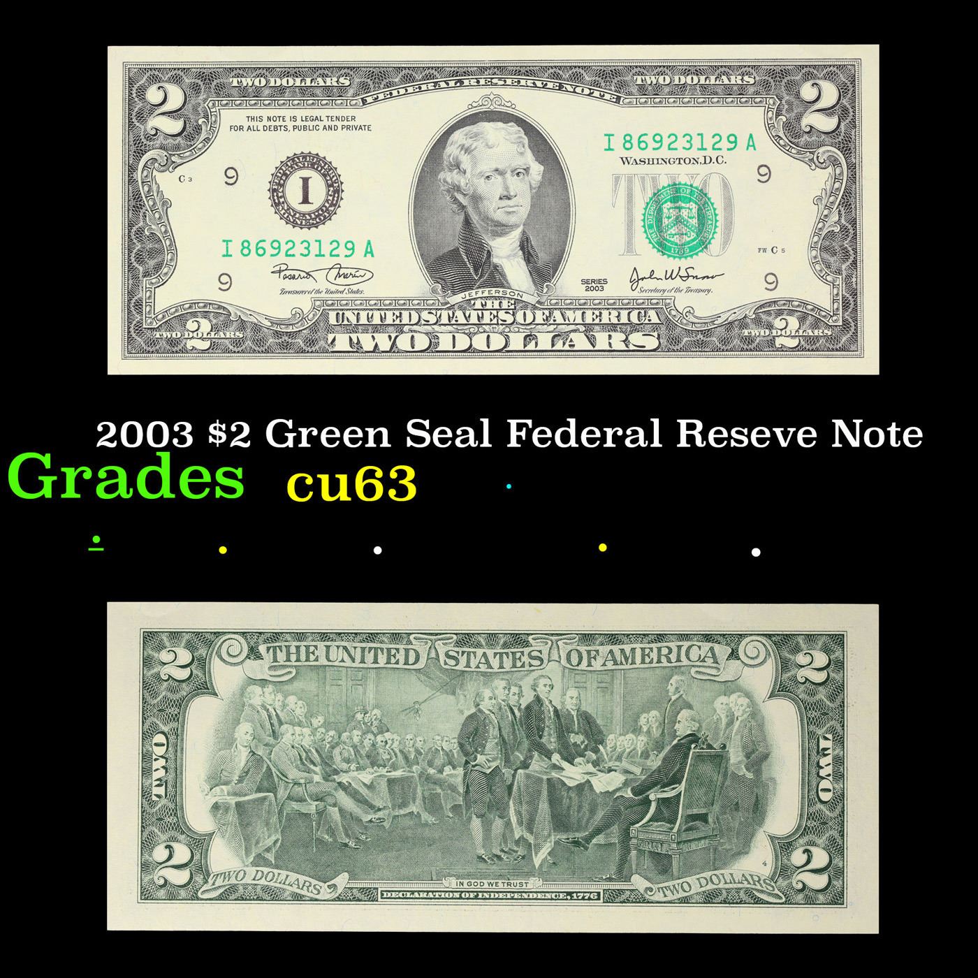2003 $2 Green Seal Federal Reseve Note Grades Select CU.