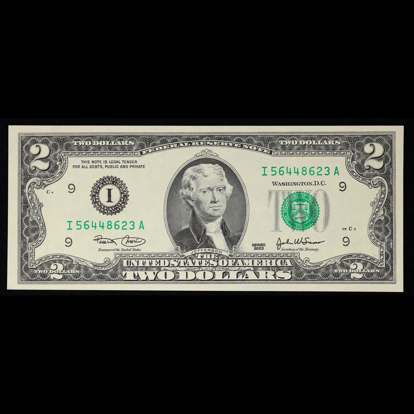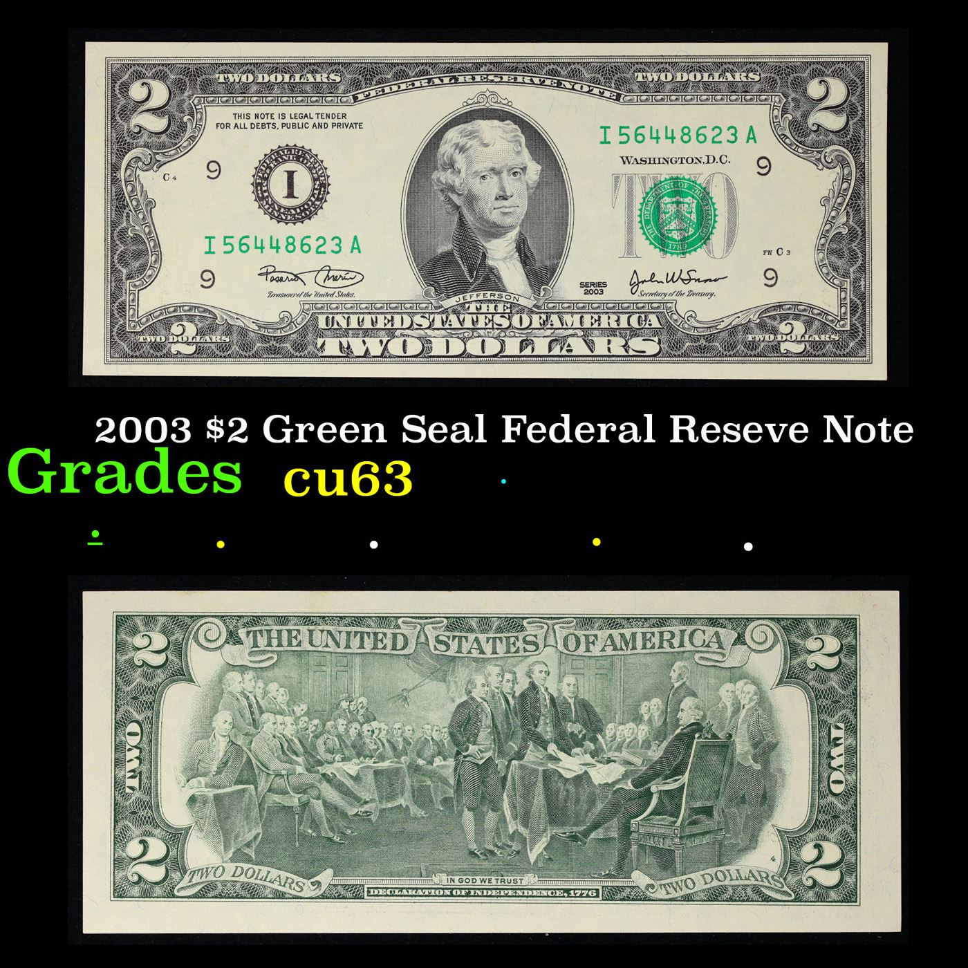 2003 $2 Green Seal Federal Reseve Note Grades Select CU.