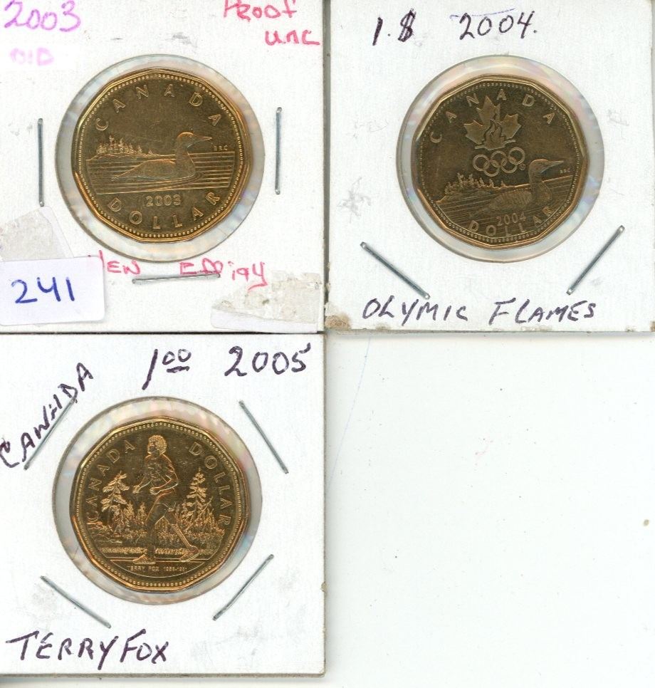 2003, 2004 and 2005 Canadian Loonie.