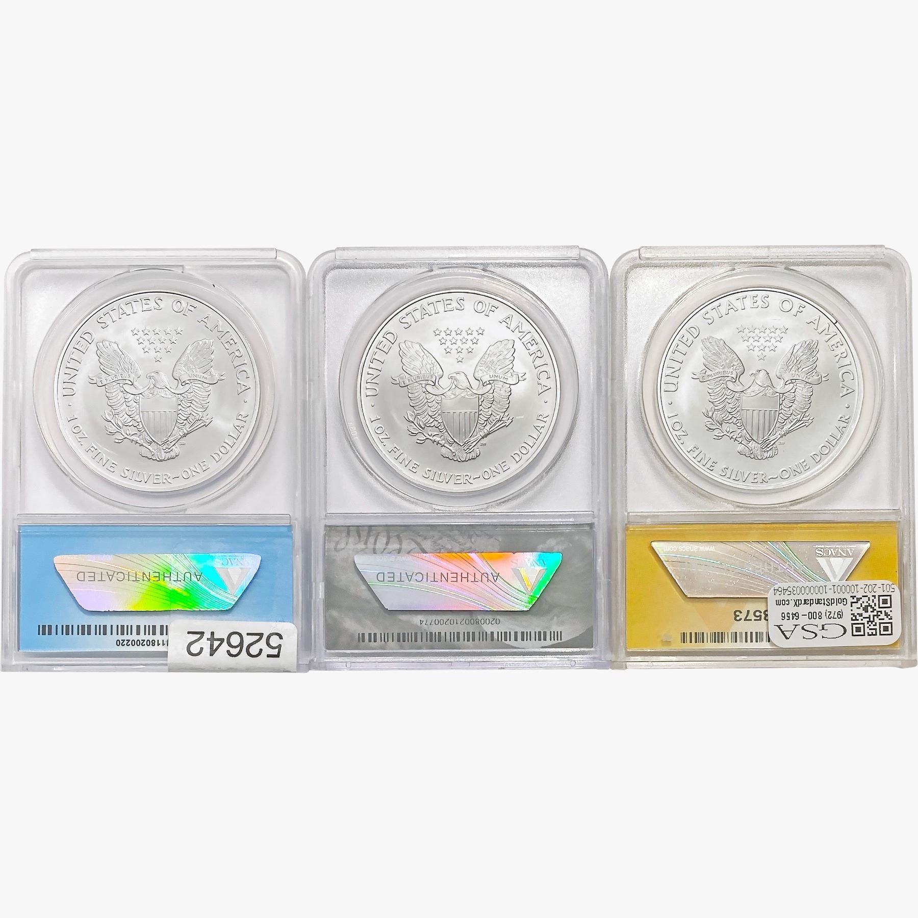 COINS AND CURRENCY LISTED IN GSA’S CATALOG AS GRADED AND ENCAPSULATED BY PCGS, NGC, ANACS, ICG, PCGS CURRENCY, PMG, PCGS BANKNOTE GRADING, CMC OR ANY OTHER THIRD-PARTY GRADING SERVICE ARE LIKEWISE SOLD “AS-IS” EXCEPT AS EXPRESSLY SET FORTH HEREIN. ALL THIRD-PARTY GRADING SERVICE GUARANTEES, INCLUDING AUTHENTICITY, ARE THE SOLE RESPONSIBILITY OF THE THIRD-PARTY GRADING SERVICE AND NOT WARRANTIES OR GUARANTEES OF GSA. BIDDERS SHOULD CONTACT THESE THIRD-PARTY GRADING SERVICES DIRECTLY WITH RESPECT TO ANY CLAIMS OR QUESTIONS THEY MAY HAVE CONCERNING THEIR GUARANTEES AND WARRANTIES. BIDDERS ACKNOWLEDGE AND AGREE THAT AUCTIONEER IS NOT BOUND BY OR LIABLE FOR ANY OPINION OR CERTIFICATION BY ANY THIRD-PARTY GRADING SERVICE. REMOVAL OF A PRODUCT FROM ITS PROTECTIVE CASING OR HOLDER OR ALTERATION OF ANY COIN HOLDER WAIVES ALL RIGHTS CONCERNING THE PRODUCT CONTAINED THEREIN.