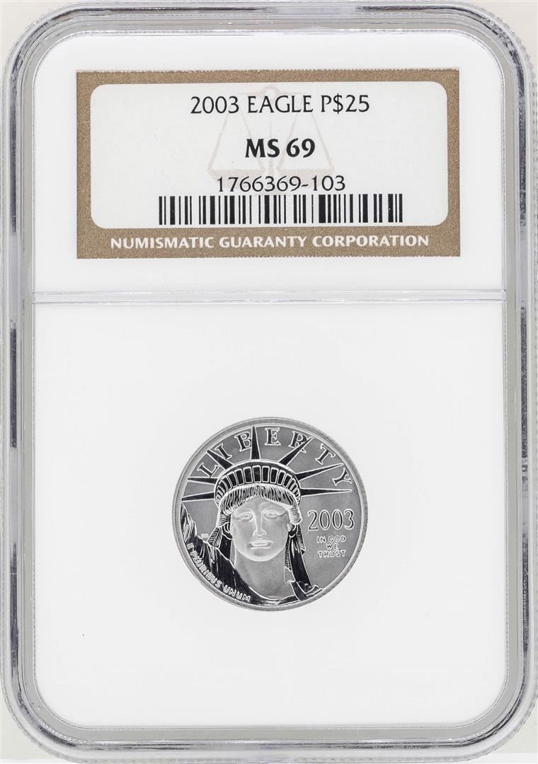 One 2003 $25 Platinum American Eagle Coin NGC MS69. NGC Certified.