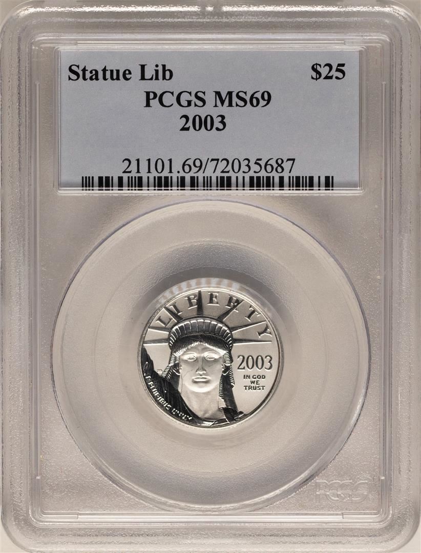 One 2003 $25 Platinum American Eagle Coin PCGS MS69. PCGS Graded.