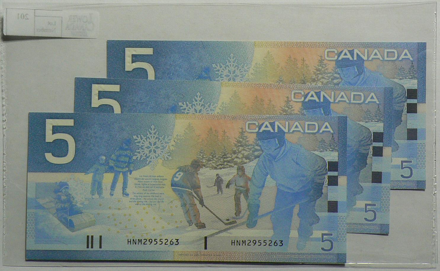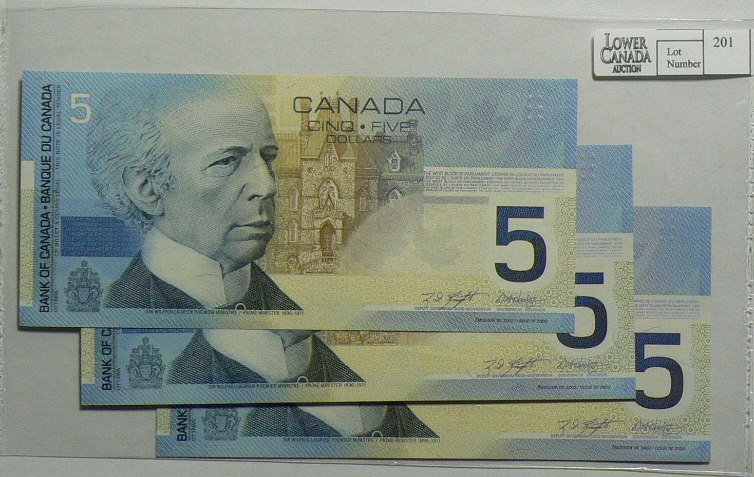 2003 $5 2 Consecutive Repl., BC-62aA-i, GEM UNC, .serial HNM2955263-64 & BC-62a-I, AU, serial HNM455