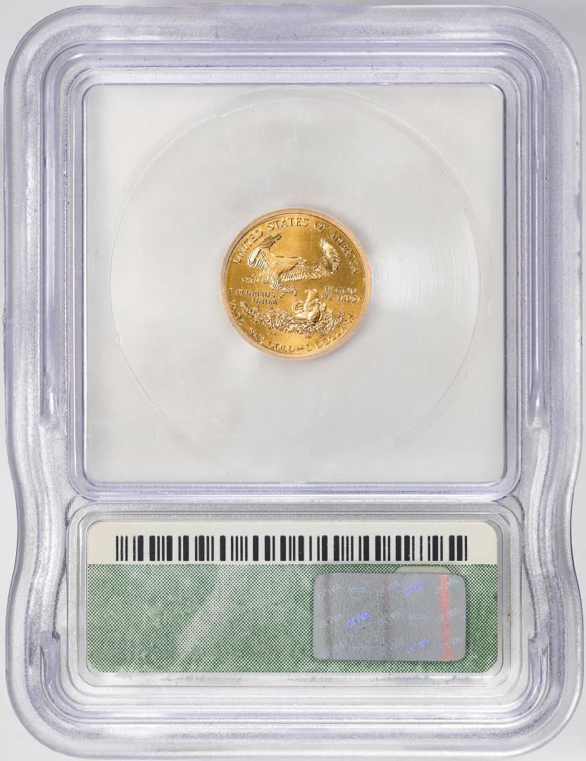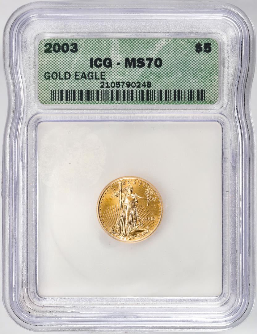 One 2003 $5 American Gold Eagle Coin ICG MS70. ICG Certified.