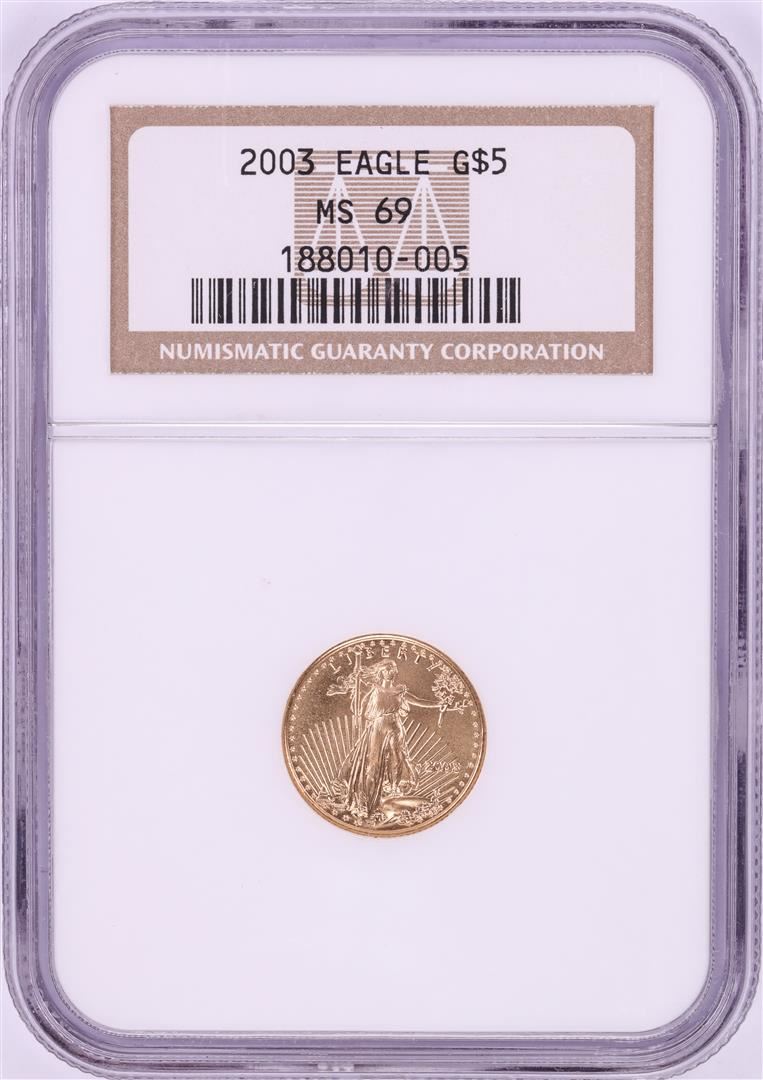 One 2003 $5 American Gold Eagle Coin NGC MS69. NGC Certified.