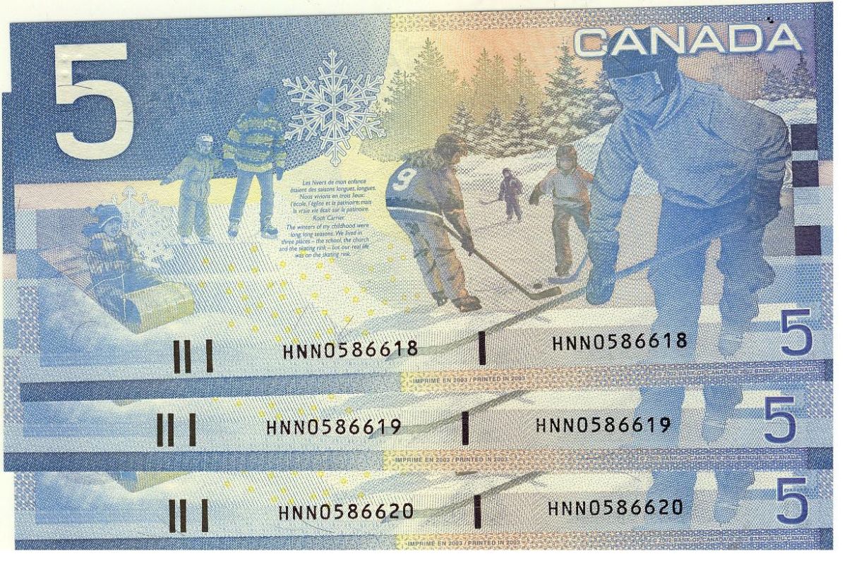 2003 $5 BC-62aA-i #HNN0586618-19-20, Lot of 3 consecutives notes, All Unc,