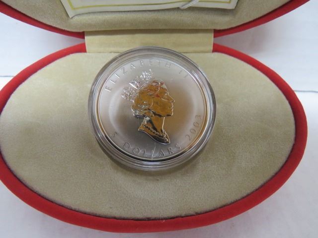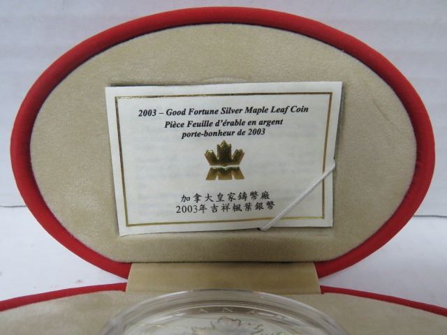 2003 $5 FINE SILVER GOOD FORTUNE SILVER MAPLE LEAF COIN