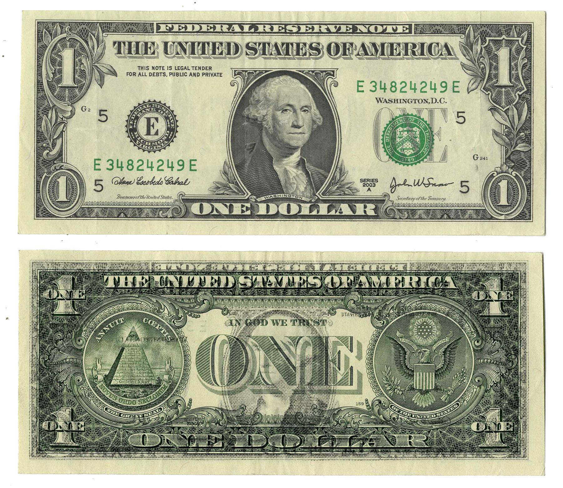 $1 Federal Reserve Error Note -- Series 2003-A, Richmond -- Front to Back Ink Transfer
