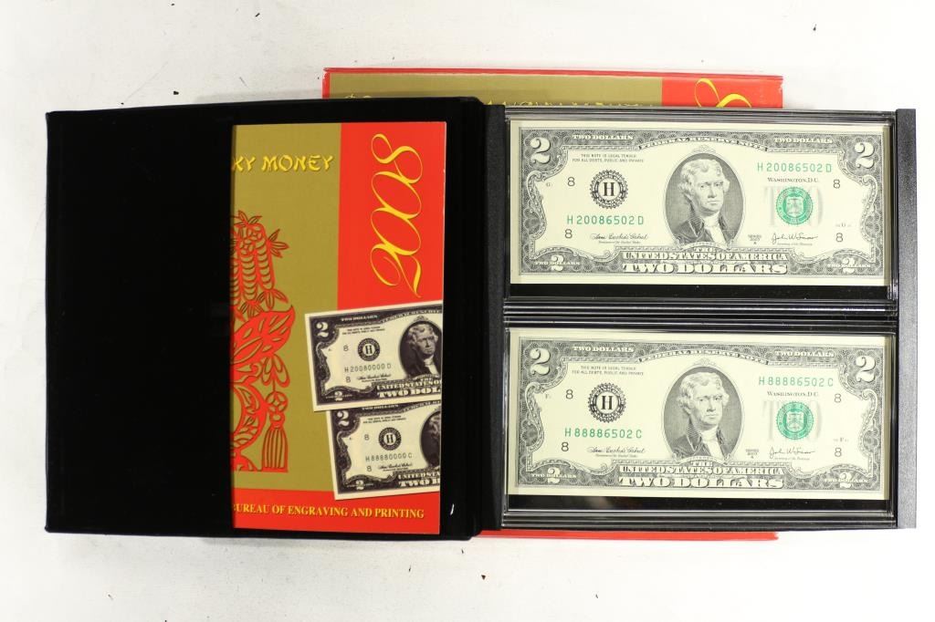 $2 FRN SERIAL NUMBER STARTING 2008 AND $2 FRN SERIAL NUMBER STARTING 8888 FROM THE SAINT LOUIS DISTRICT #8, CRISP UNC, ORIGINAL BEP PACKAGING. TYPICAL RETAIL IS $100.00