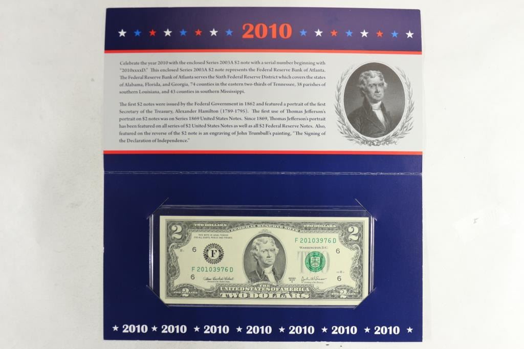 WITH 2010 CRISP UNC, ORIGINAL BEP PACKAGING