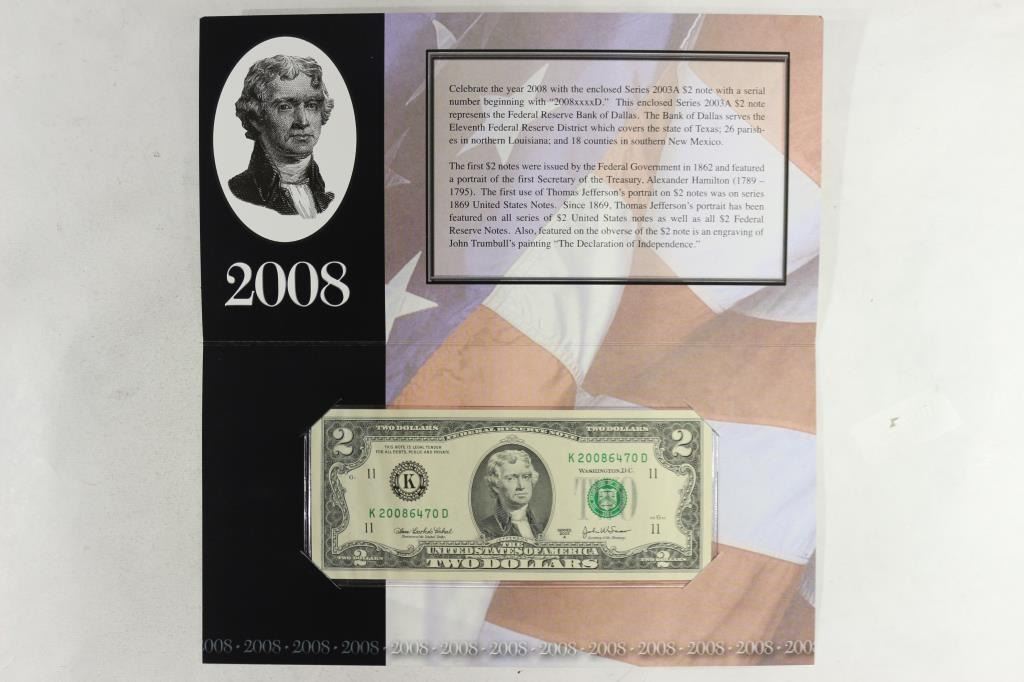 WITH 2008 CRISP UNC, ORIGINAL BEP PACKAGING
