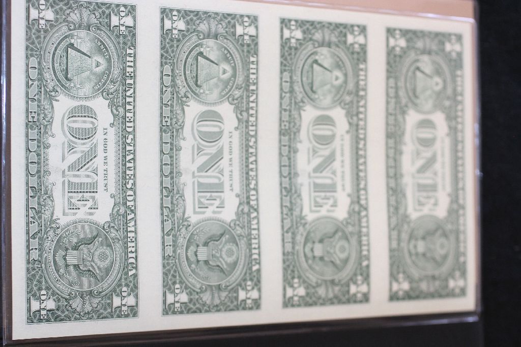 2003-A US Federal Reserve Note $1; San Francisco CA Reserve; Lot of 4 Uncut Bills