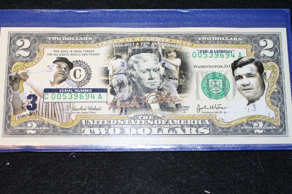 2003-A US Federal Reserve Note $2 Colorized "Babe Ruth", Philadelphia PA Reserve, #C00539694A