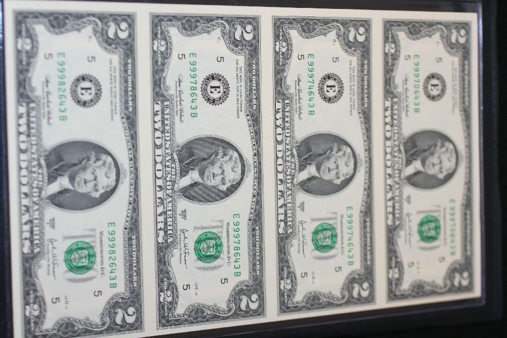 2003-A US Federal Reserve Note $2; Richmond VA Reserve; Lot of 4; Uncut Bills In World Reserve Monetary Exchange Album