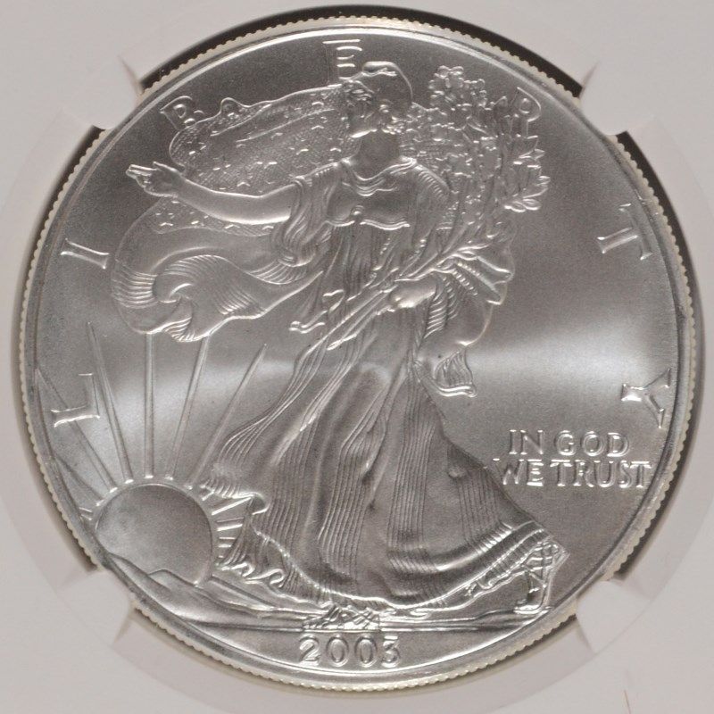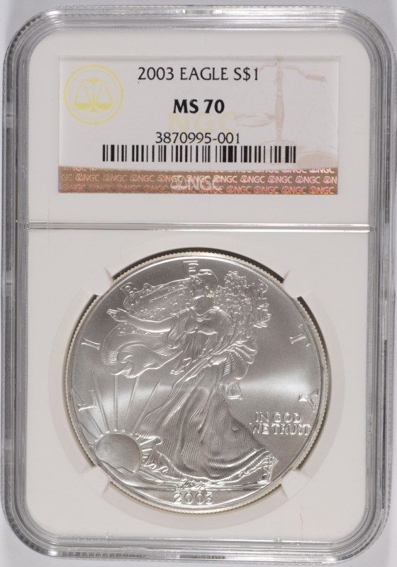 2003 AMERICAN SILVER EAGLE, NGC MS-70, BROWN LABEL PERFECT!!