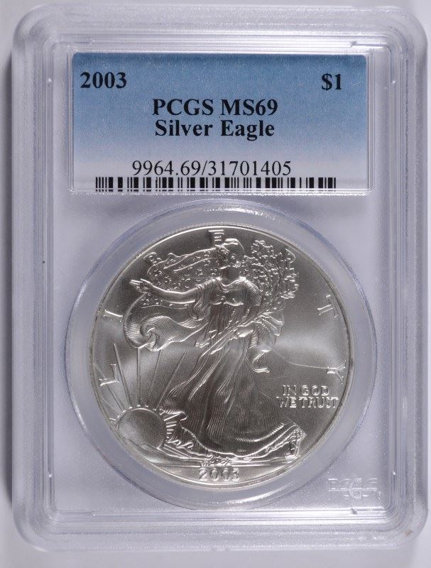 2003 AMERICAN SILVER EAGLE, PCGS MS-69