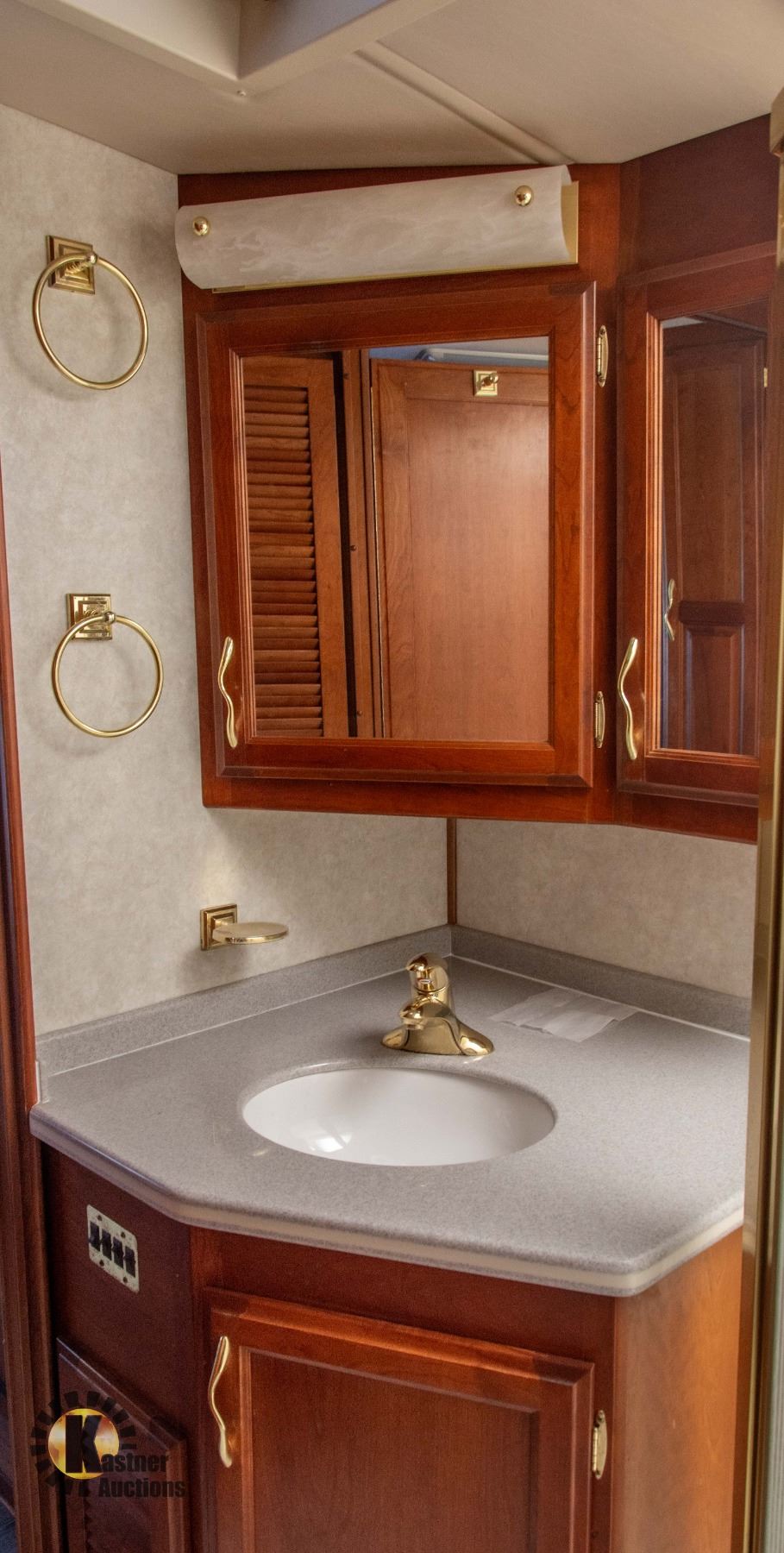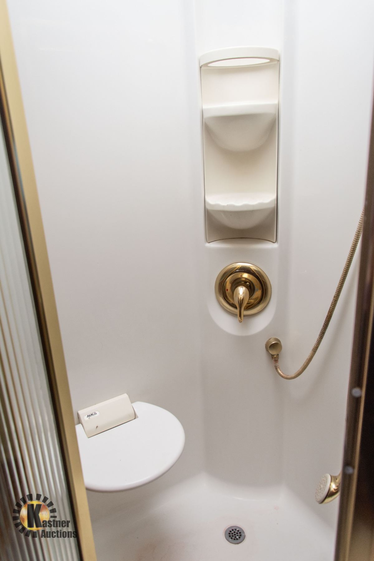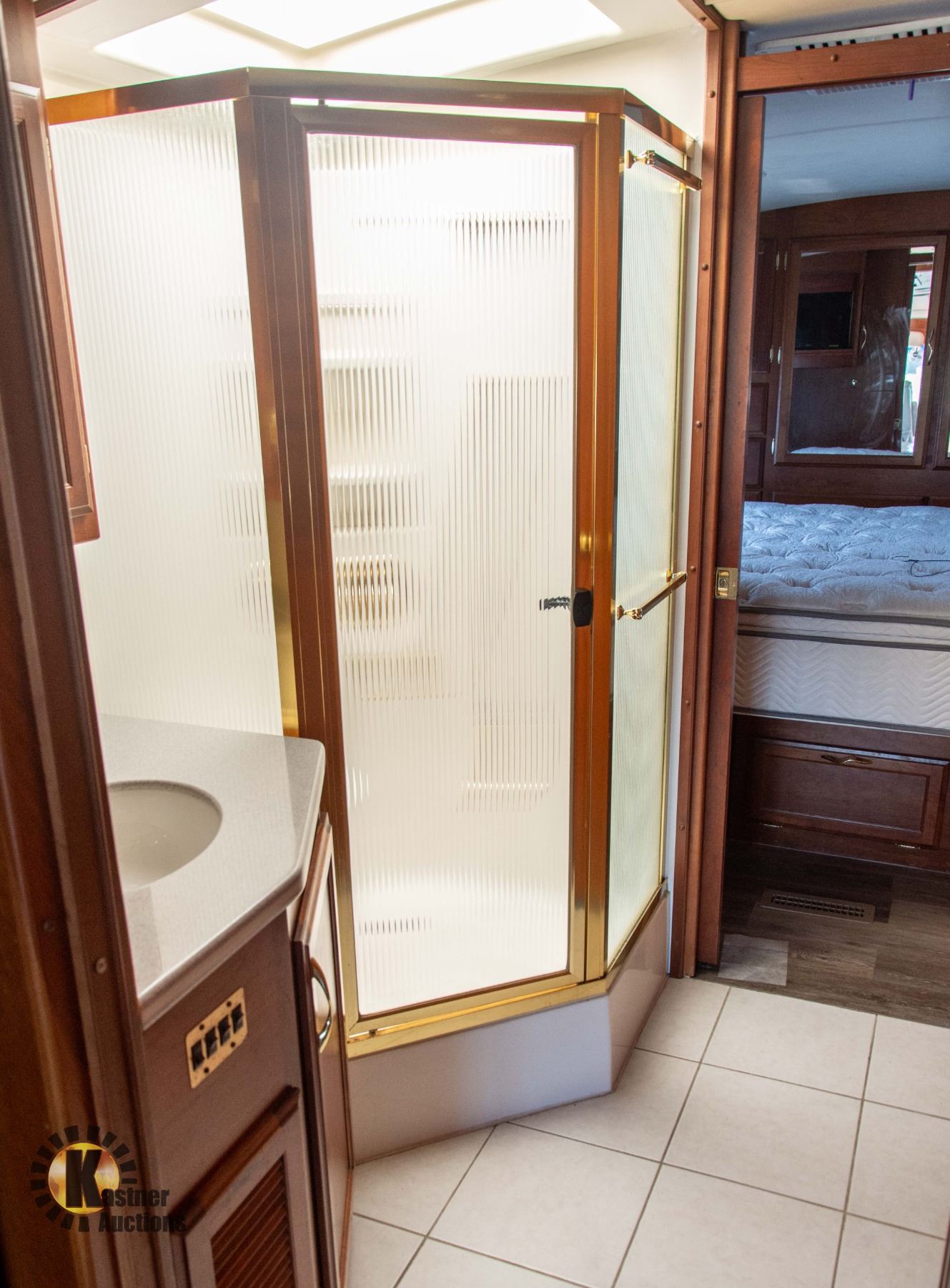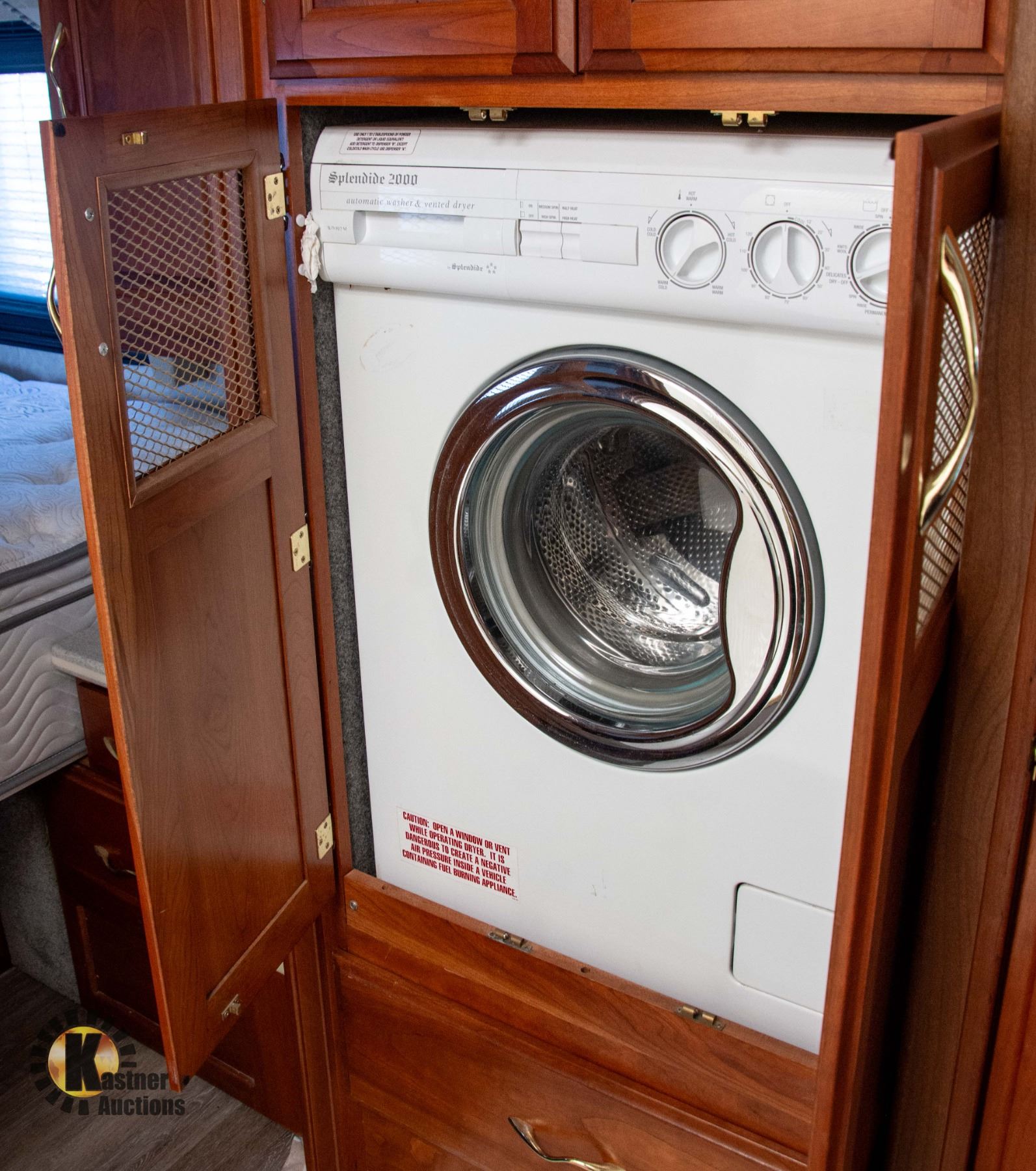 BATHROOM FEATURES FULL SIZED QUARTZ SINK, FULL SIZED SHOWER WITH GLASS DOORS AND FOLD OUT SEAT/SHELF, LOTS OF CABINET SPACE AND SKYLIGHT. PRIVATE TOILET, AND SPLENDID 2000 ALL IN ONE VENTED WASHER/DRYER.