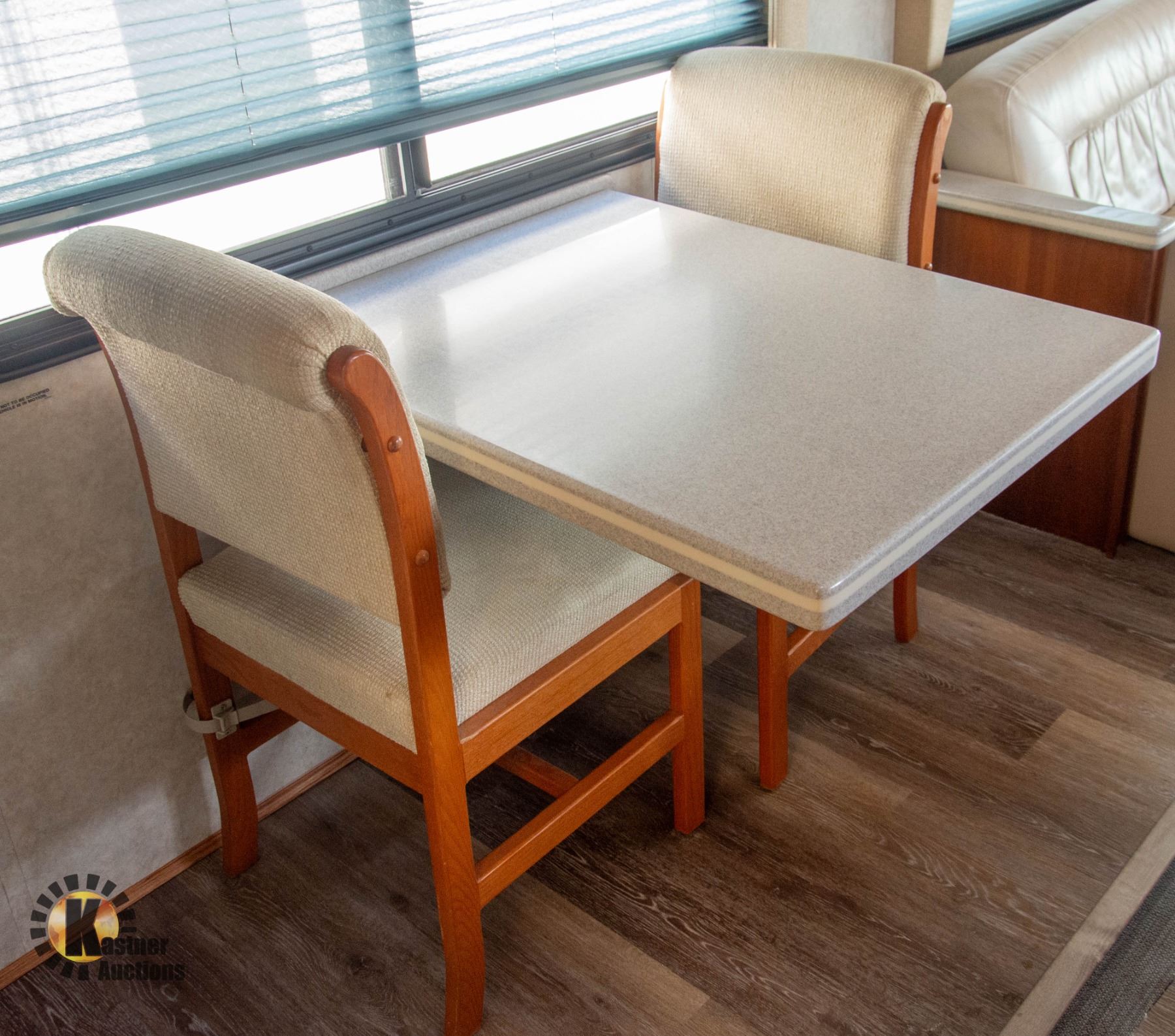 LIVING ROOM FEATURES LARGE SLIDE OUT WITH MATCHING QUARTZ KITCHEN TABLE WITH 4 CHAIRS (2 CHAIRS ARE STORED IN BACK OF RV).