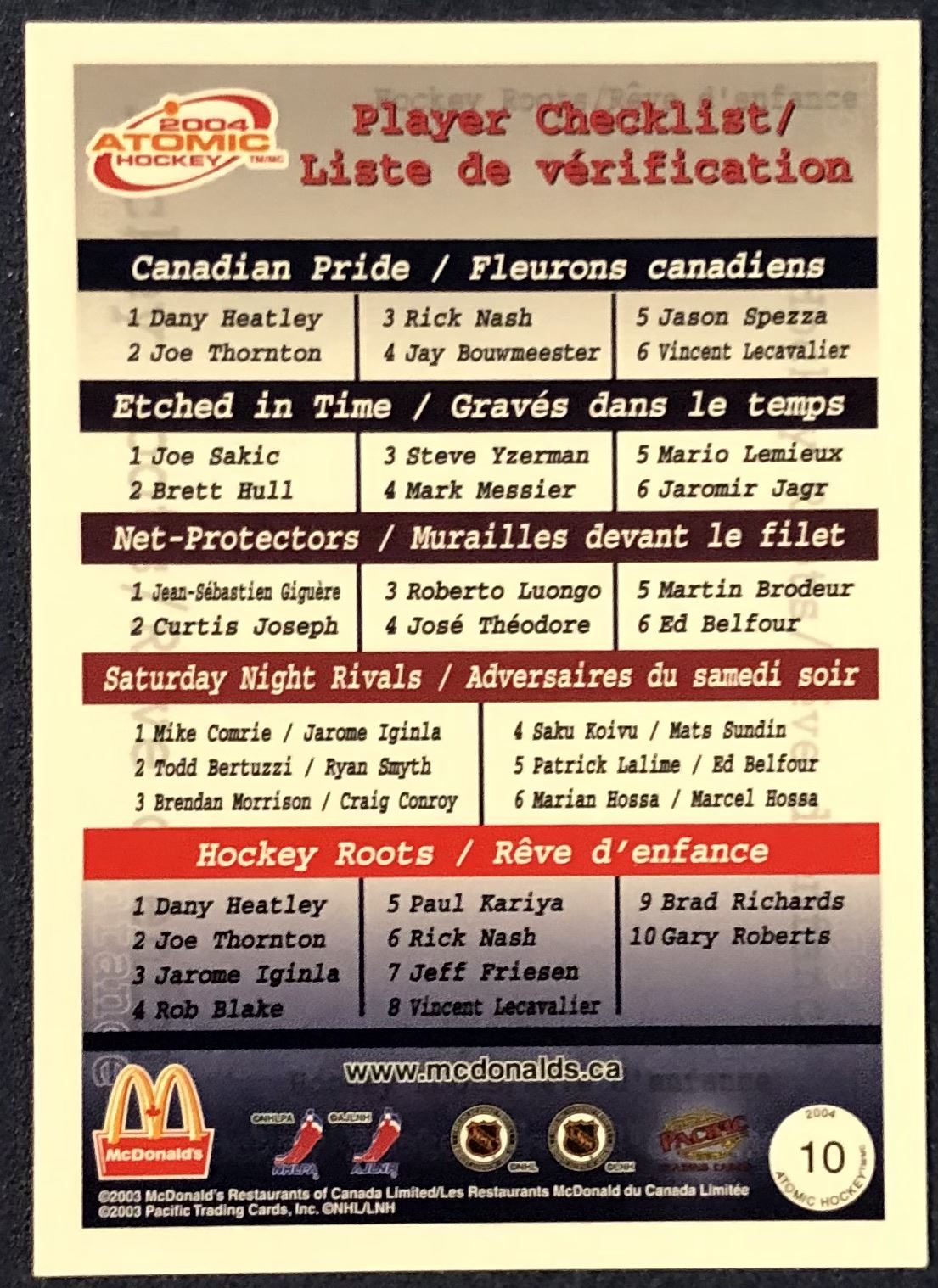 McDonald's #10 NHL, hockey, regional, hall of fame