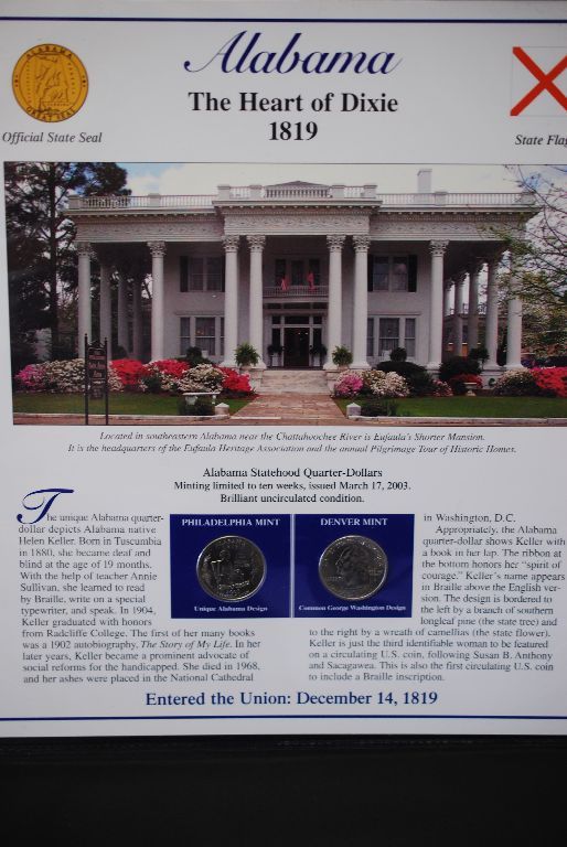 2003 Alabama State Quarter Coin Set W/US Postal Stamps; P&D Mints; EST. $5-10