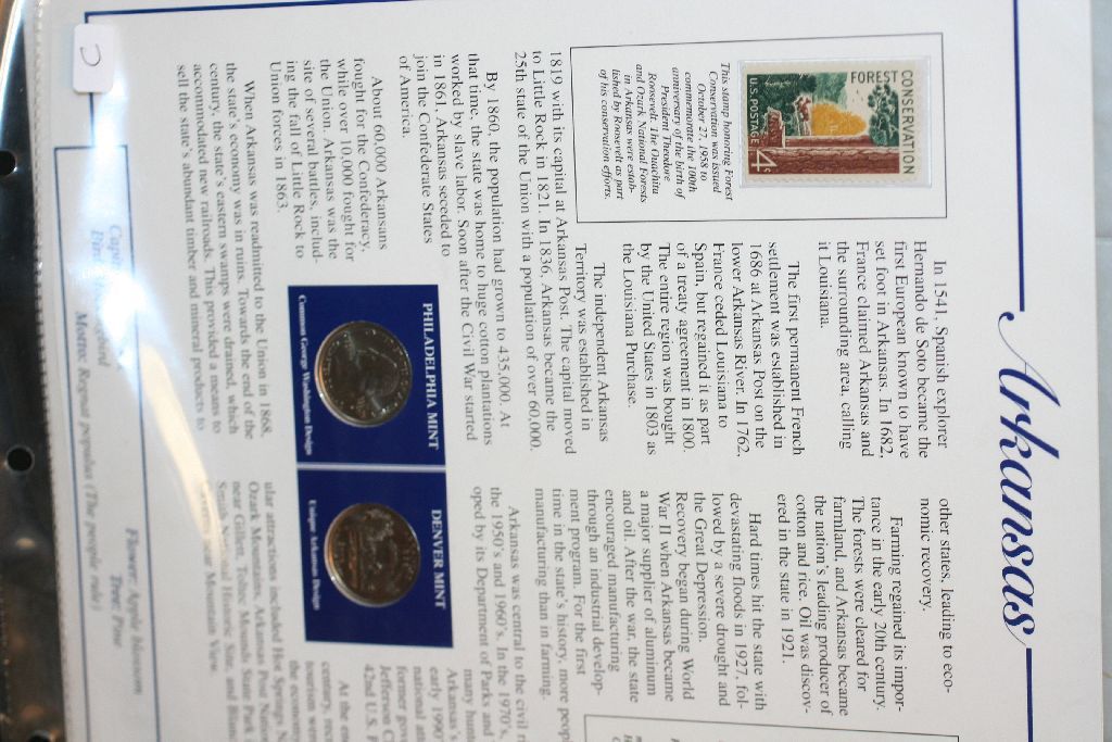 2003 Arkansas State Quarter Set W/Postal Stamp Honoring Forest Conservation & Disabled American Veterans; P&D Mints