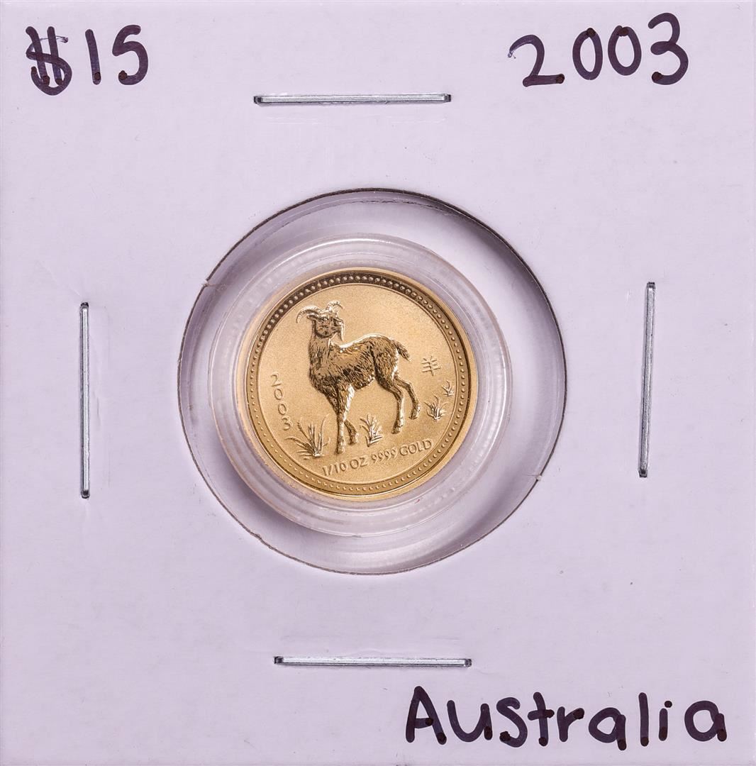 One 2003 Australia $15 Year Of The Goat 1/10 oz Gold Coin.
