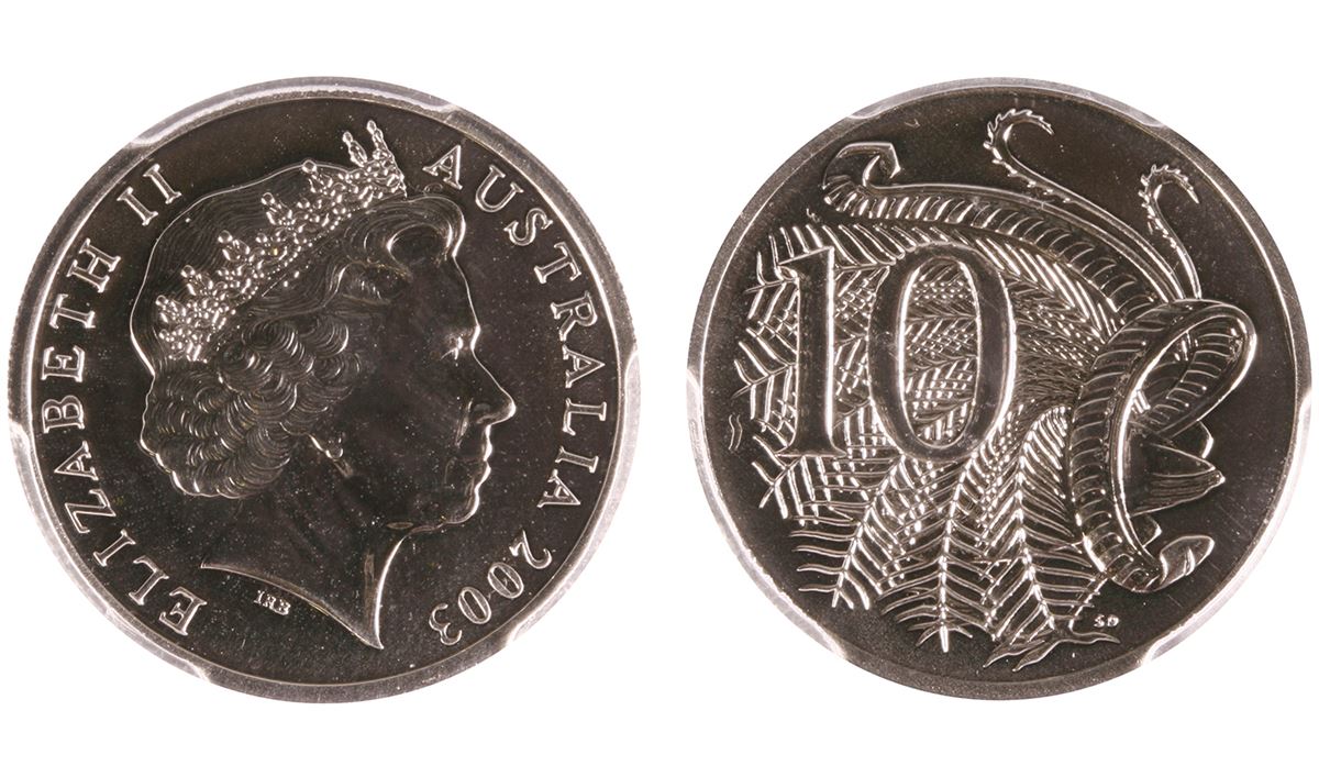 2003 Australian QEII Ten Cent Coin - PCGS MS69