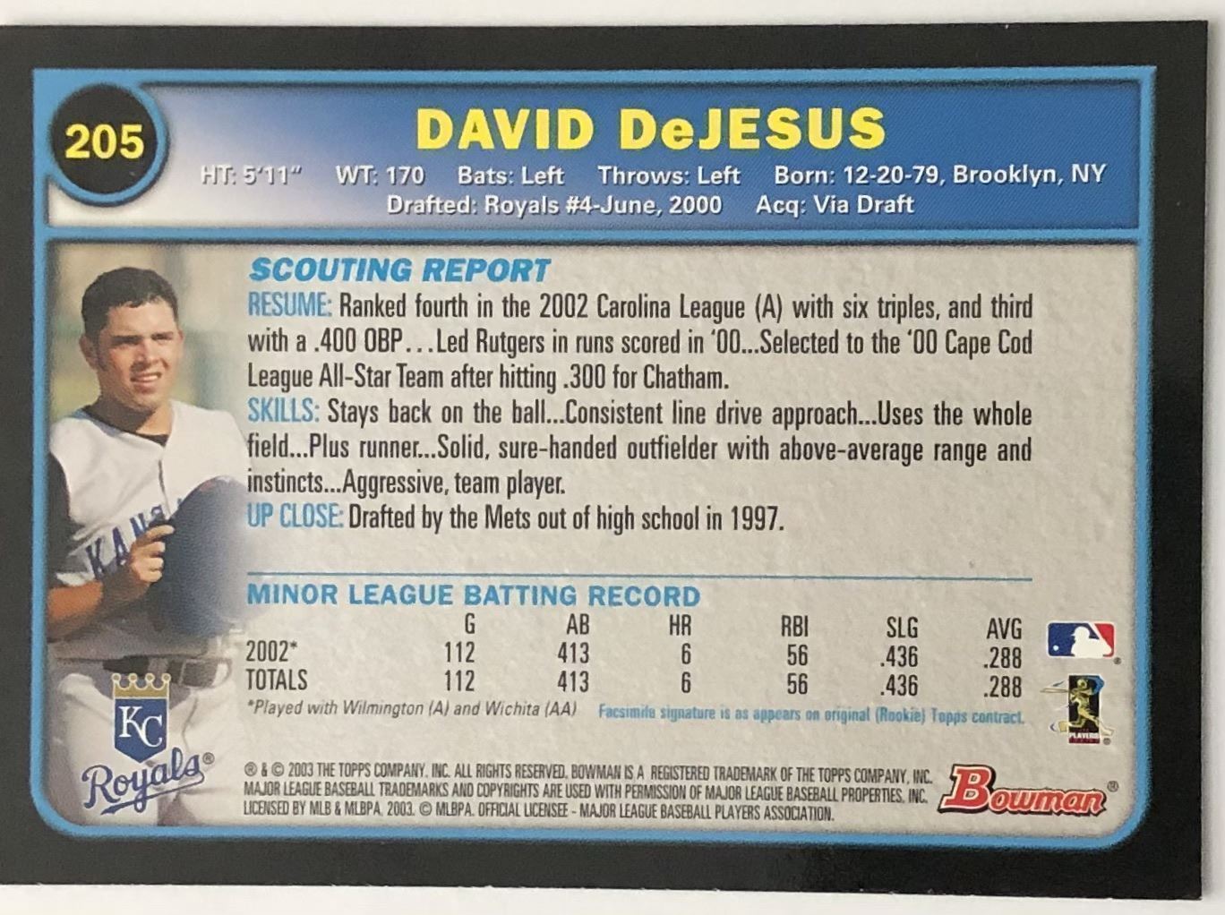 Card #205 MLB, baseball, rookie