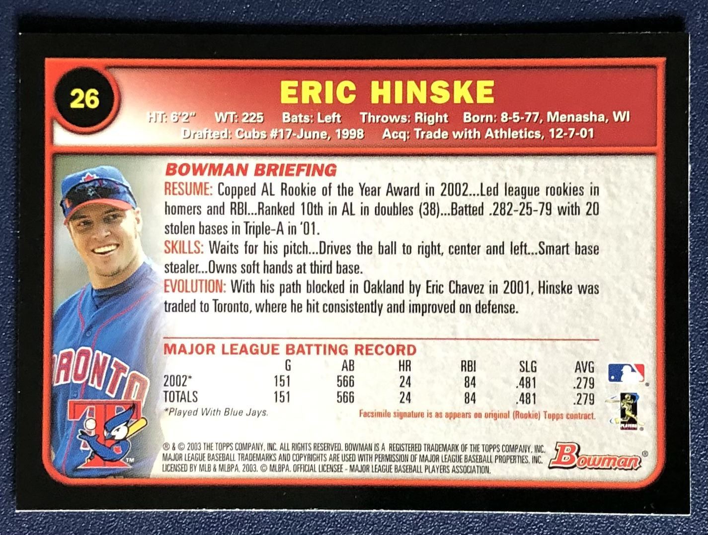 Card #26 MLB, baseball, TOPPS, rookie