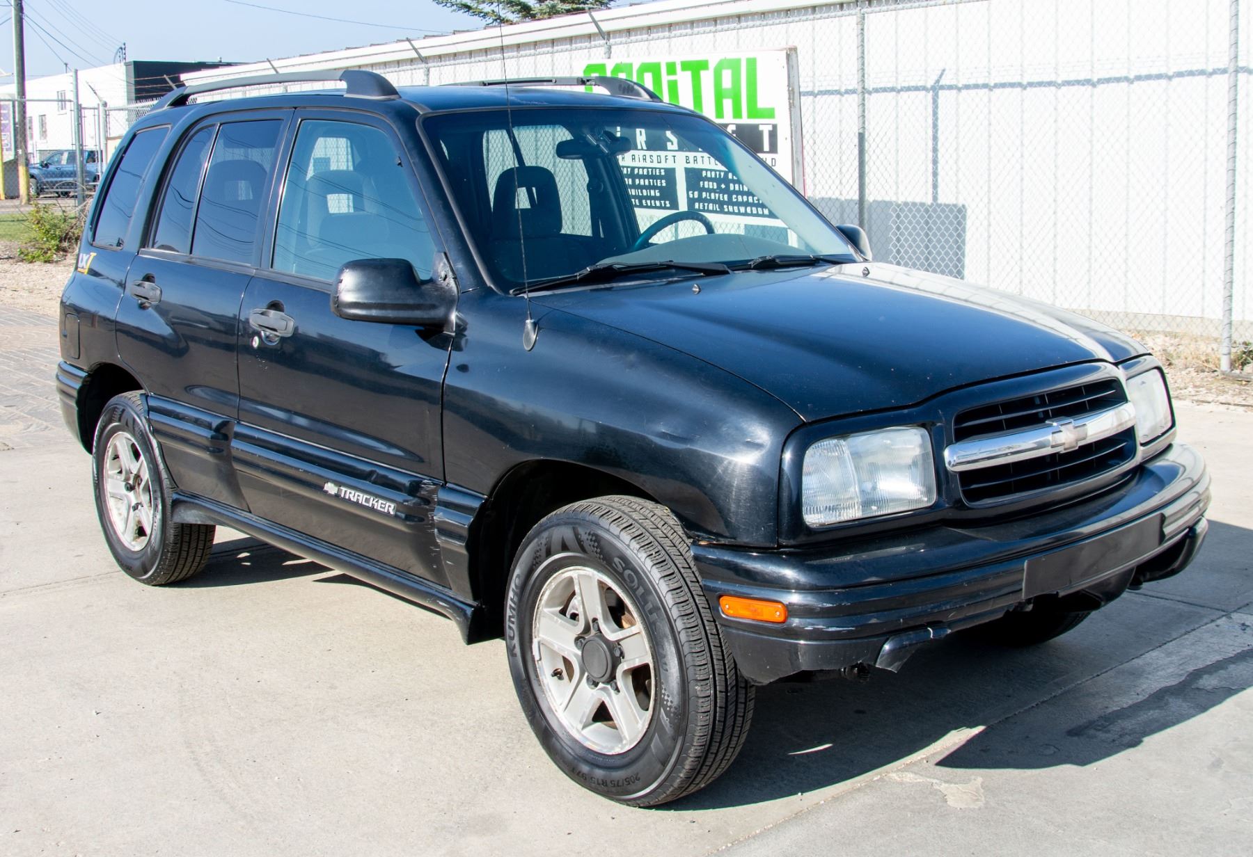 VIN: 2CNBJ13C936906785 KM: 244,593 Engine: 4 CYLINDERS Color: BLACK 2003 CHEVROLET TRACKER, AIR CONDITIONING, CRUISECONTROL, HEATED SEATS, POWER DOOR LOCKS, POWER WINDOWS, AUTOMATIC TRASNMISSION, CD CHANGER, CLOTH SEATS, POWER MIRRORS, ALL WHEEL DRIVE, FULLY LOADED, HAS NEUTRAL MODE IN TRANSFER CASE FOR TOWING, NEW TIRES, NO WARNING LIGHTS ON, FRONTBUMPER CRACKED/DAMAGED, TRUNK HANDLE CRACKED/DAMAGED, RIGHT SIDE MIRROR HAS SLIGHT DAMAGE, ALL BIDS SUBJECT TO BANK, BAILIFF OR OWNER APPROVAL. ALL VEHICLES ARE SOLD AS IS.
