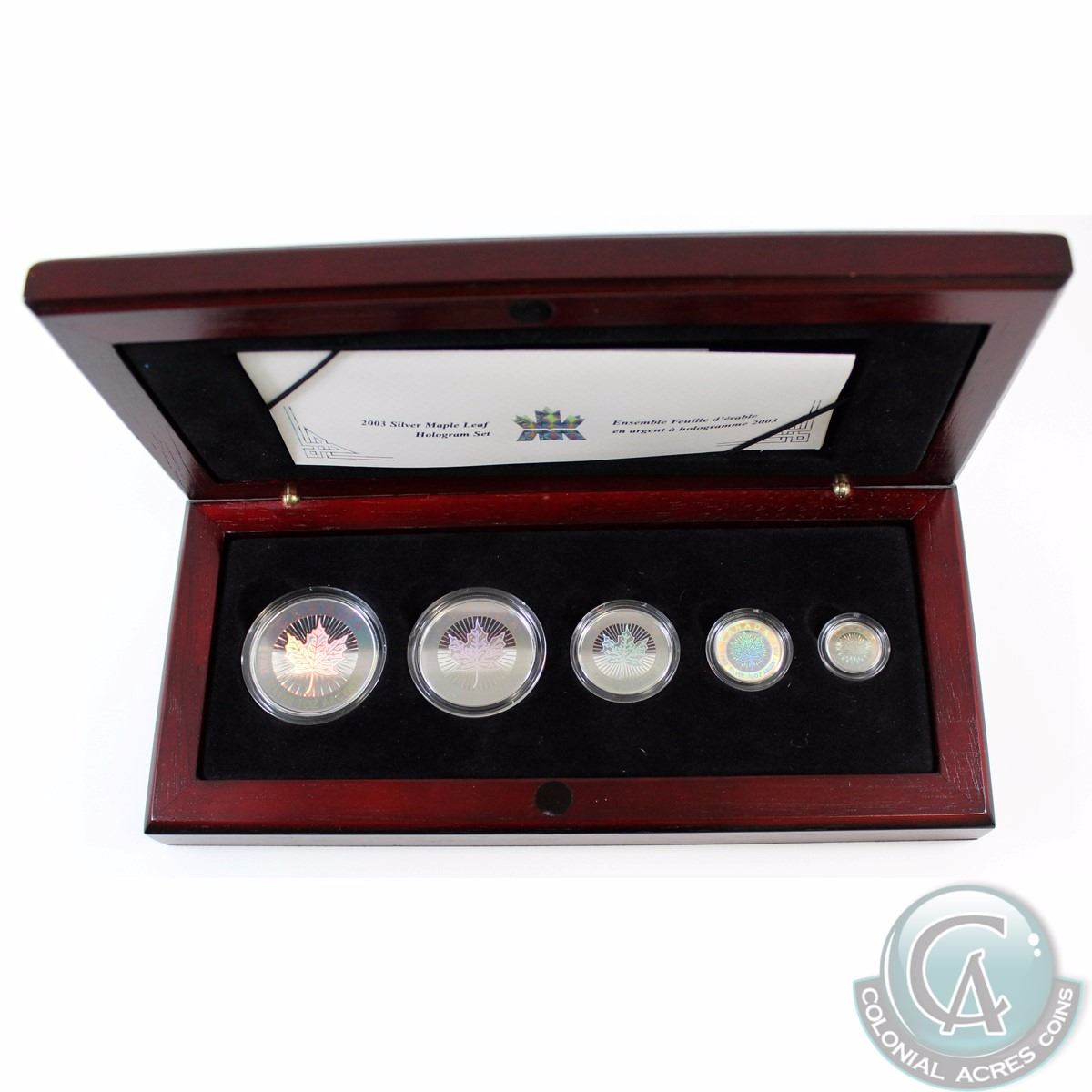 2003 Canada Hologram 5-coin Fine Silver Maple Leaf Set (Outer sleeve lightly tattered & some coins lightly scratched) - TAX Exempt