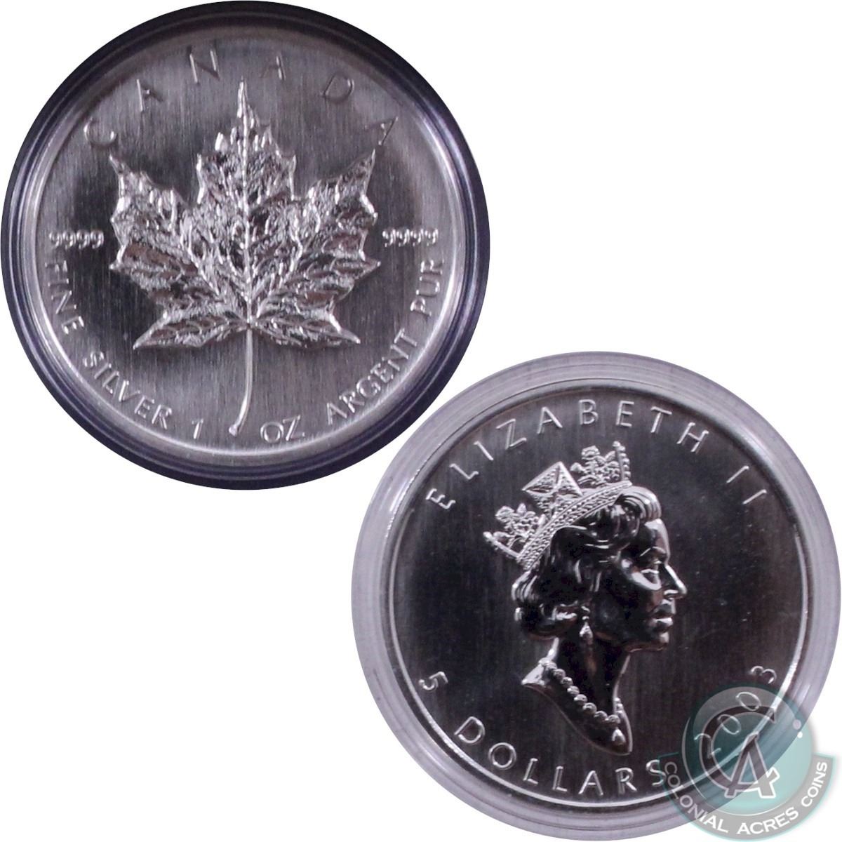 2003 Canada Silver Maple Leaf $5 in blue case as issued by the RCM. No Tax