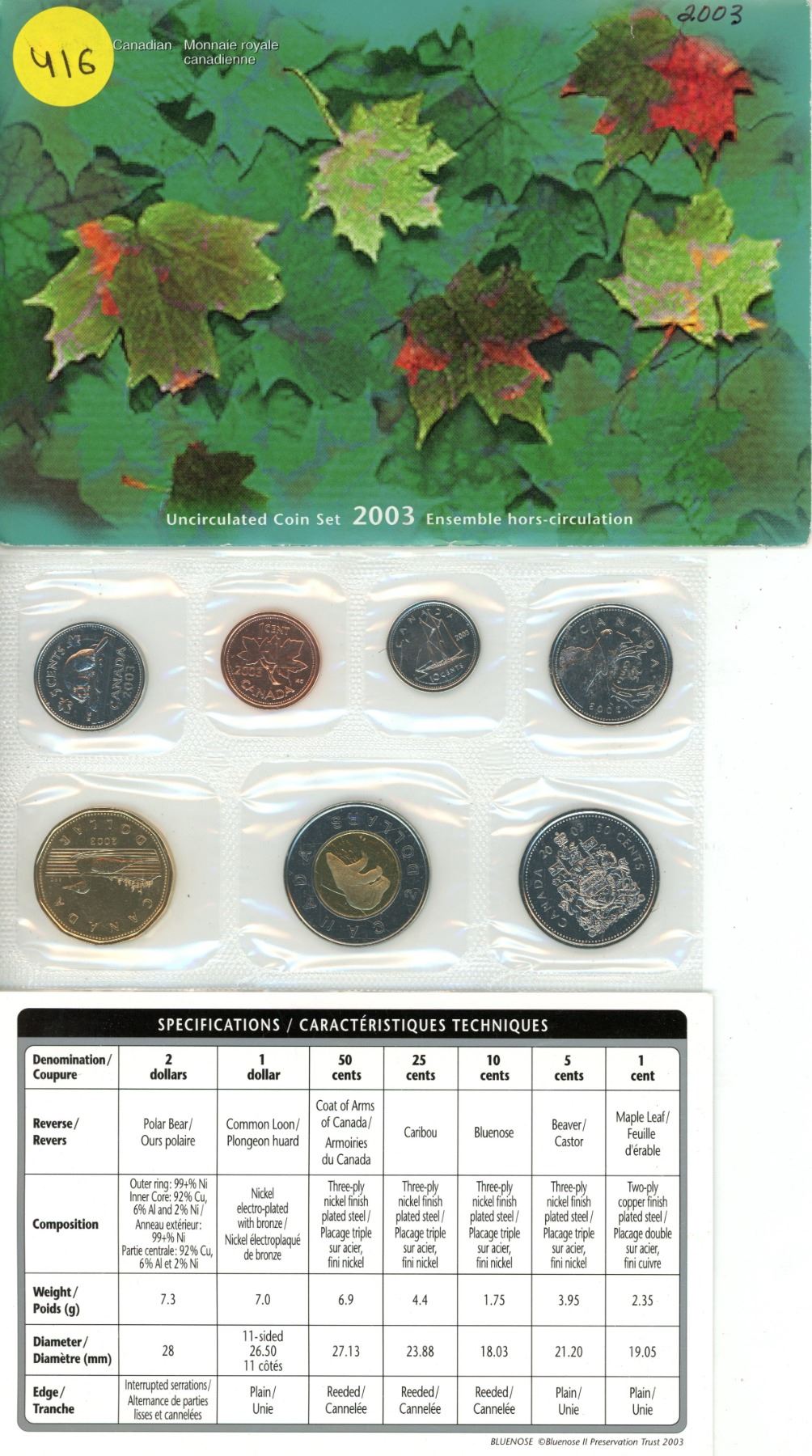 2003 Canada UNC Year Set