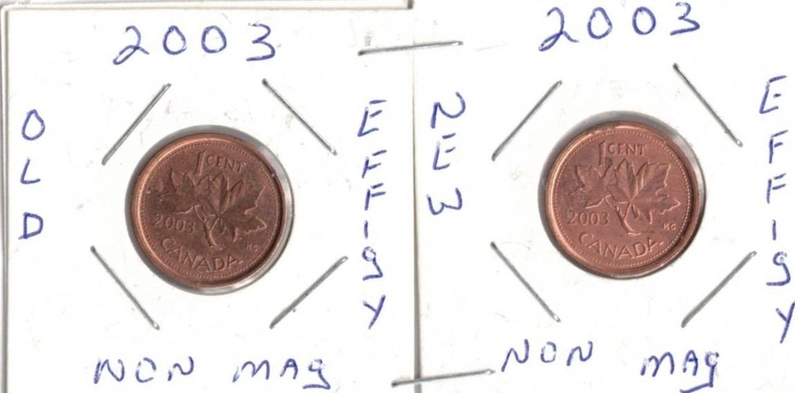 2003 Canadian Small Cent Pennys, Old Effigy and New Effigy Non-Magnetic