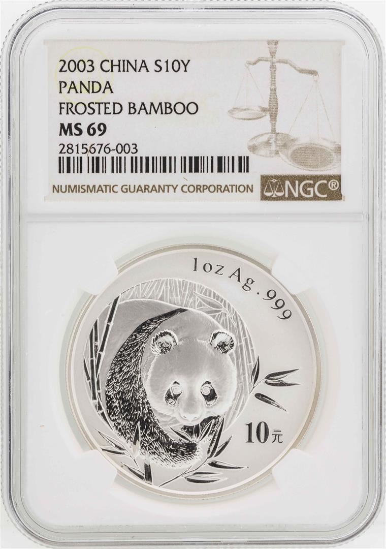 One 2003 China 10 Yuan Panda Silver Coin NGC MS69. NGC Certified.