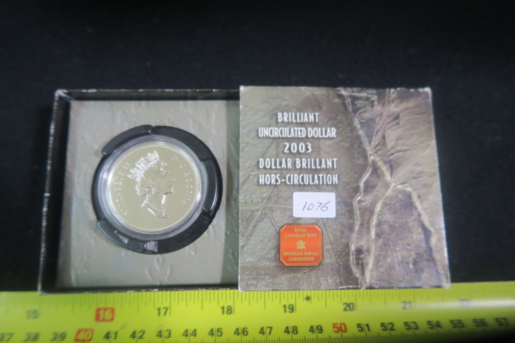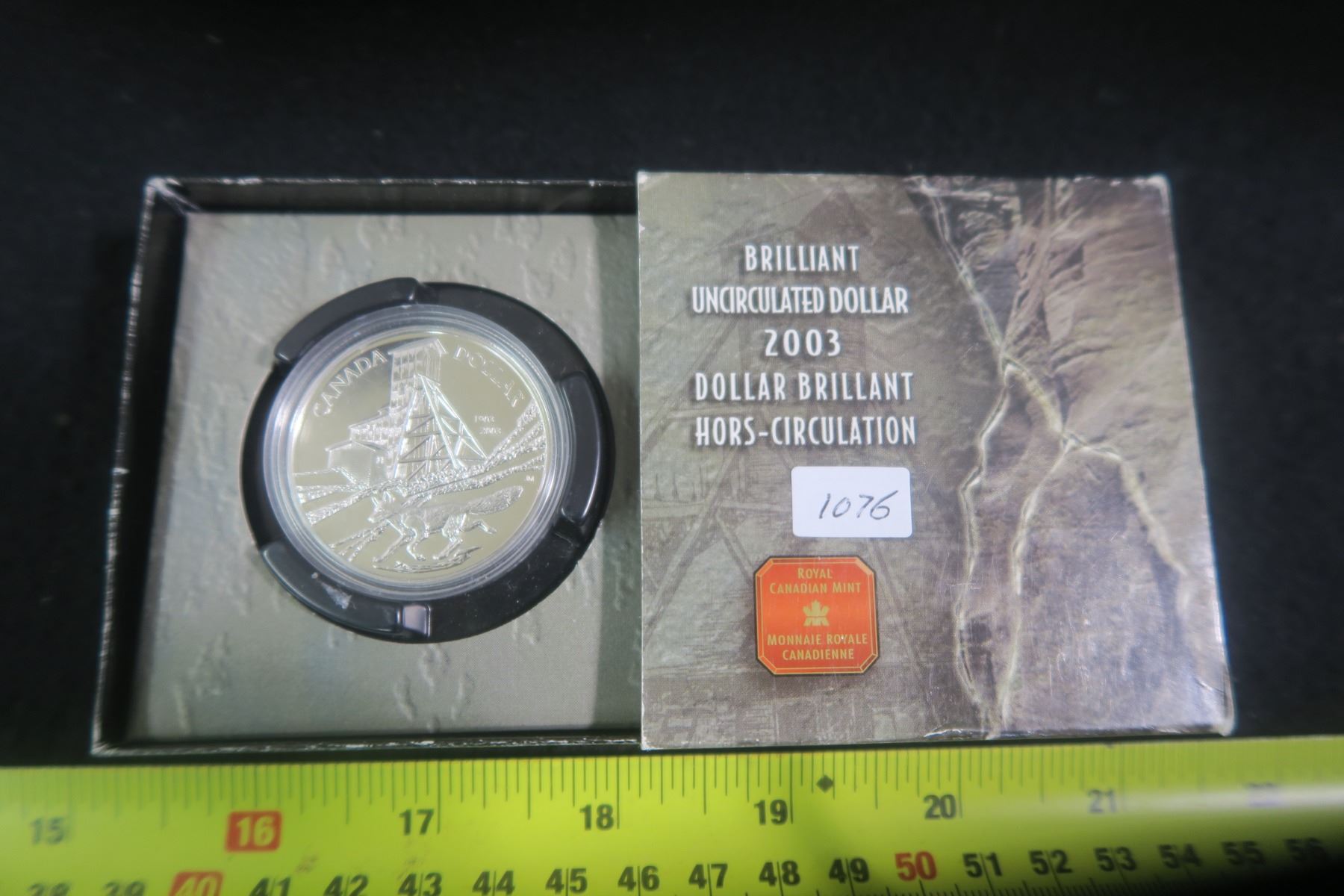 2003 Cobalt Silver Dollar. Celebrates the 100th Anniversary of the Cobalt discovery of silver in Ontario. Specimen. Housed in its original case of issue.