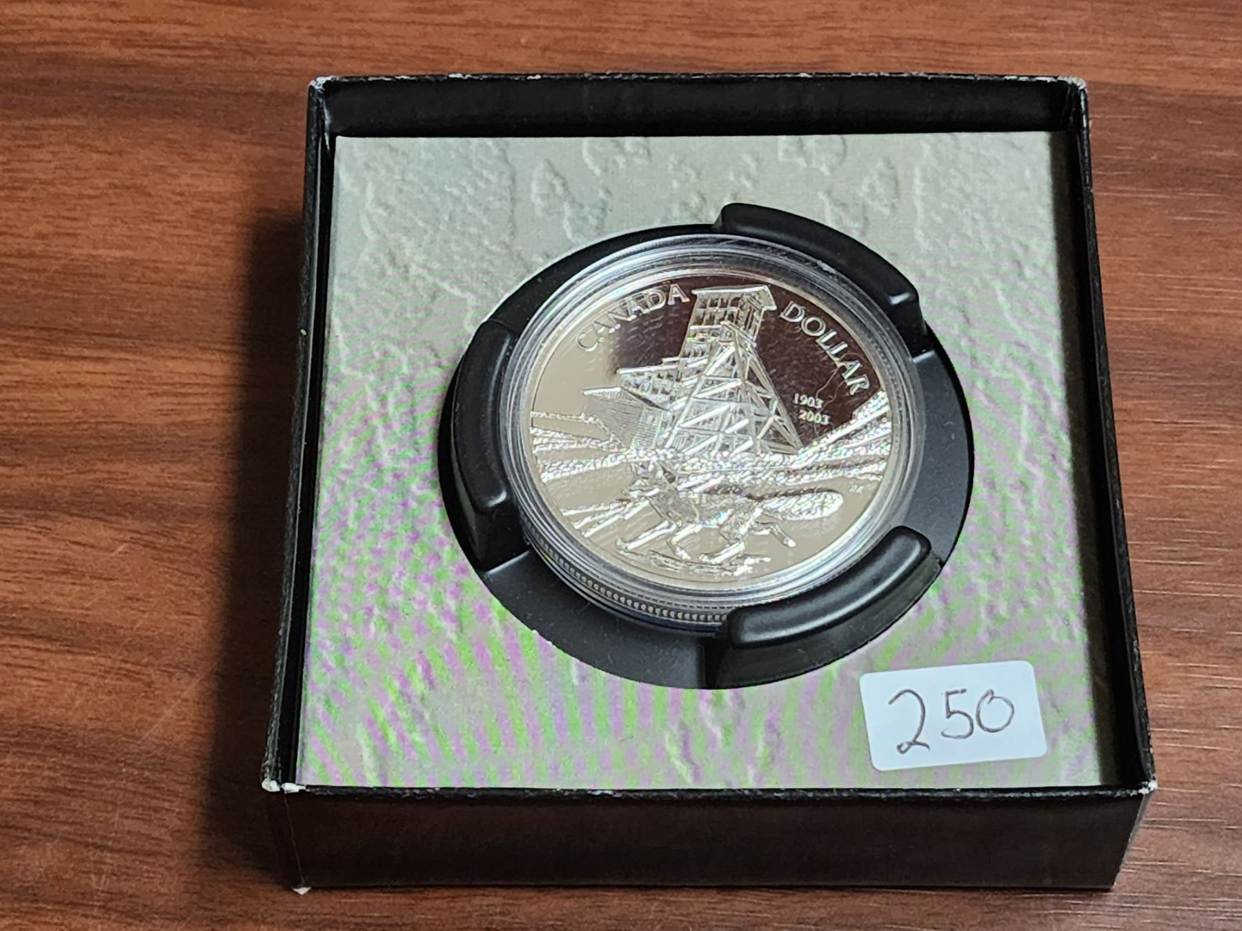 2003 Cobalt Silver Dollar. Commemorates the 100th Anniversary of a miner throwing a mining hammer at a fox (missing the fox but hitting a rich vein of silver). Specimen.