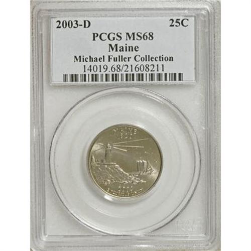 <B>2003-D 25C Maine MS68 PCGS.</B></I> Michael Fuller Collection. PCGS Population (9/0). NGC Census: (11/0). (#14019)<BR><BR><b>Shipping:</b> Coins & Currency (<a target="_blank" href="http://www.heritageauctions.com/common/shipping.php">view shipping information</a>)