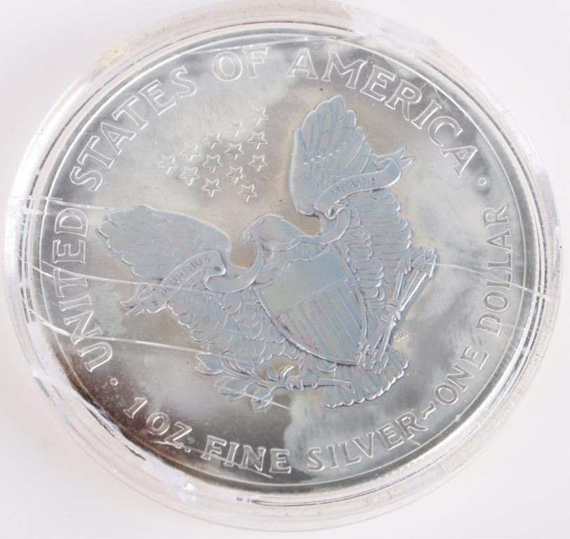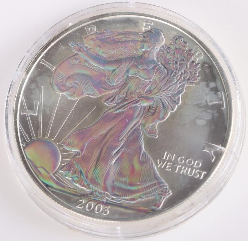 2003 Holographic American silver Eagle .999 fine silver eagle. Both obverse and reverse of coin have holographic designs.