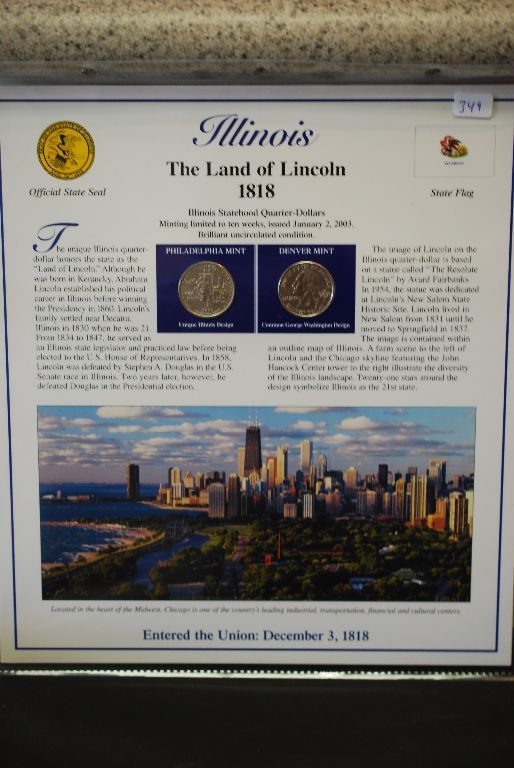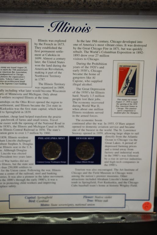 2003 Illinois State Quarter Coin Set W/US Postal Stamps; P&D Mints; EST. $5-10