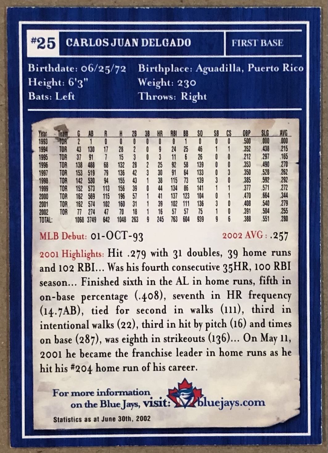 2003 JAYS FOUNDATION CARLOS DELGADO