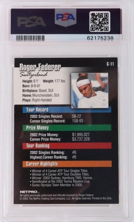 2003 Neptro glossy Rodger Federer card #G11 PSA 8 NM-MT.