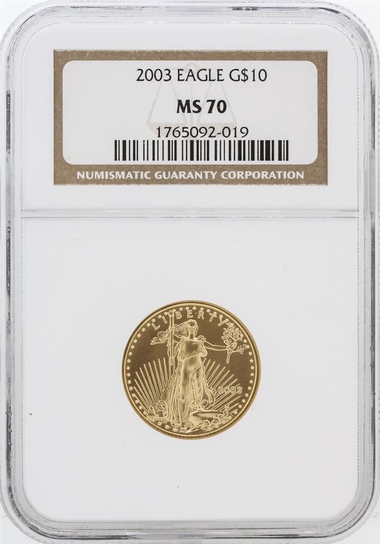 One 2003 NGC MS70 $10 American Eagle Gold Coin. NGC Certified.