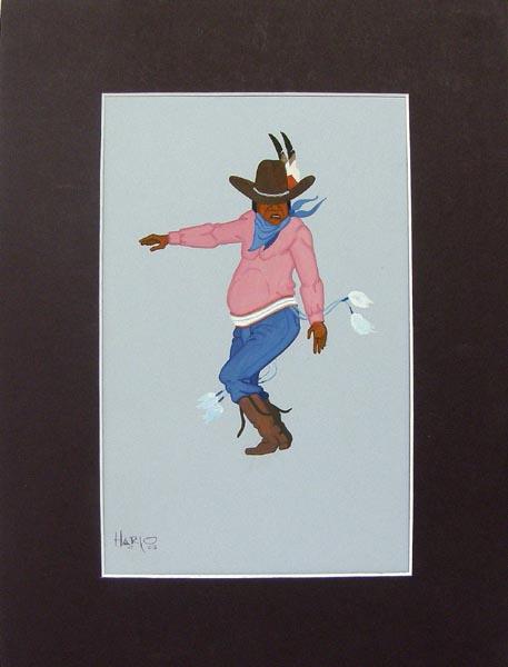 2003 Original Painting By Albert Harjo, matted only. Titled ''Stomp Dancer''. Measures approx. 11'' x 7''. SHI $25.