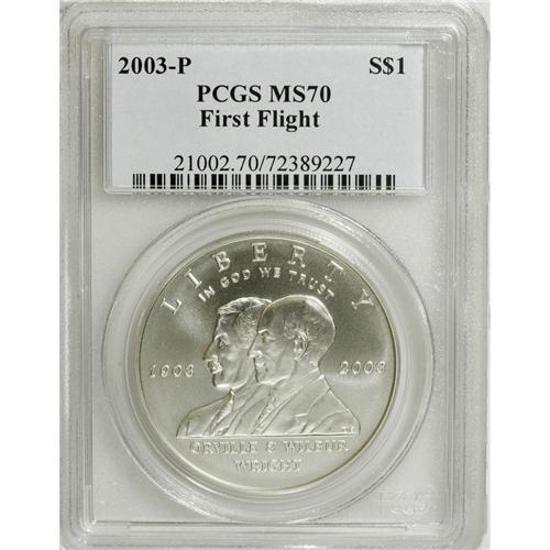 <B>2003-P $1 First Flight Silver Dollar MS70 PCGS.</B></I> PCGS Population (43/0). NGC Census: (0/0). (#21002)<BR><BR><b>Shipping:</b> Coins & Currency (<a target="_blank" href="http://www.heritageauctions.com/common/shipping.php">view shipping information</a>)