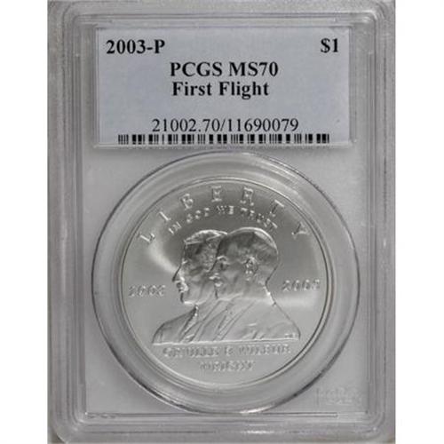 <B>2003-P $1 First Flight Silver Dollar MS70 PCGS.</B></I> PCGS Population (48/0). NGC Census: (0/0). (#21002)<BR><BR><b>Shipping:</b> Coins & Currency (<a target="_blank" href="http://www.heritageauctions.com/common/shipping.php">view shipping information</a>)