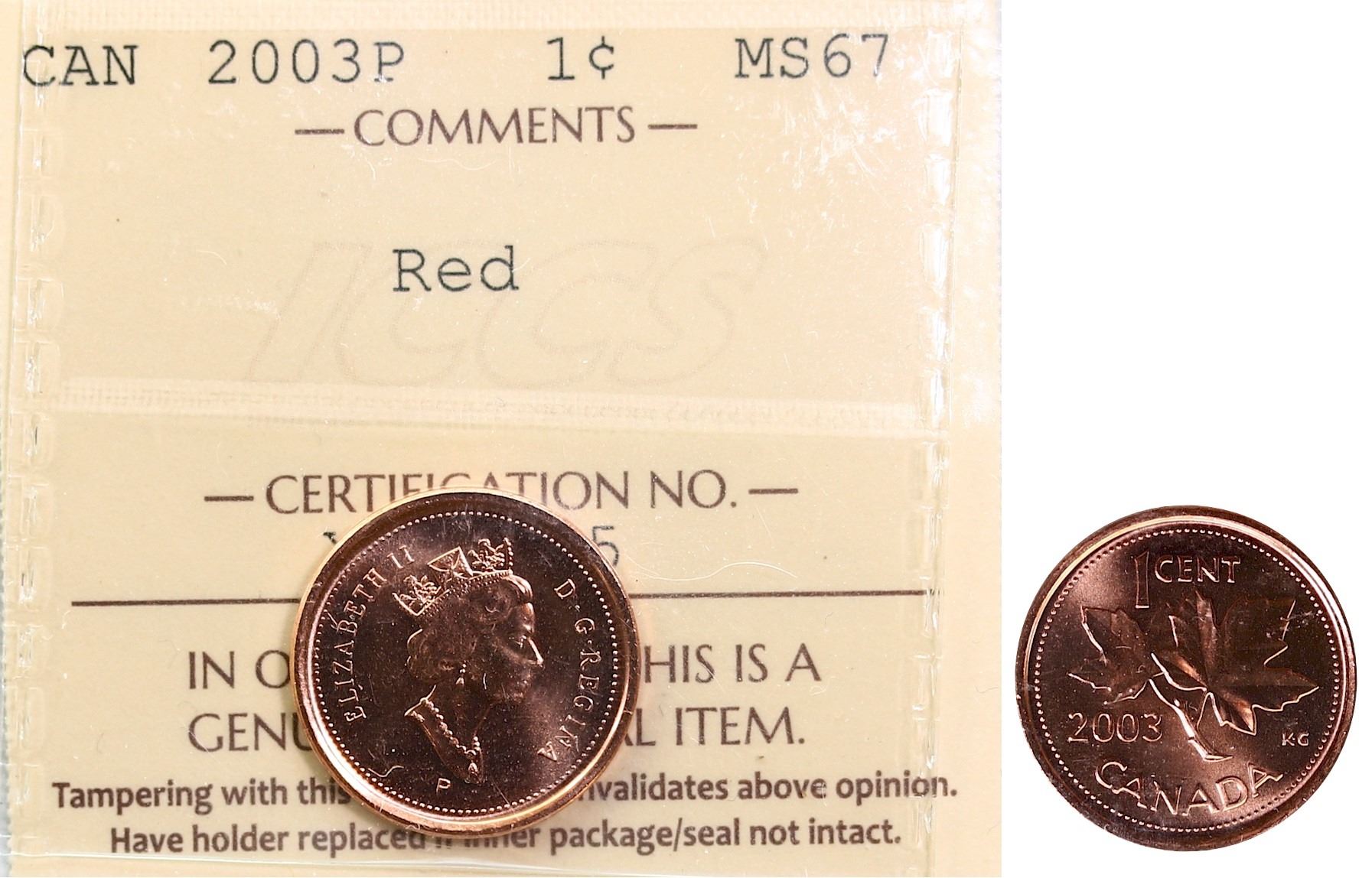 2003-P 1¢ ICCS Superb Gem Mint State-67 Full red.