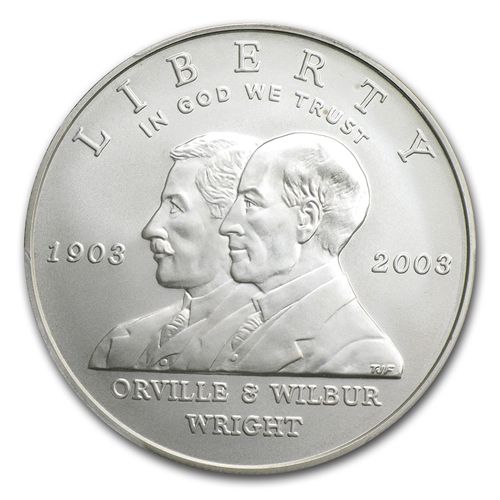 2003-P First Flight Centennial $1 Silver Commemorative **|**|** Year: 2003 ; Mint Mark: MS-70 ; Grade: P - Philadelphia ; Denomination: $1 ; MSRP: $400