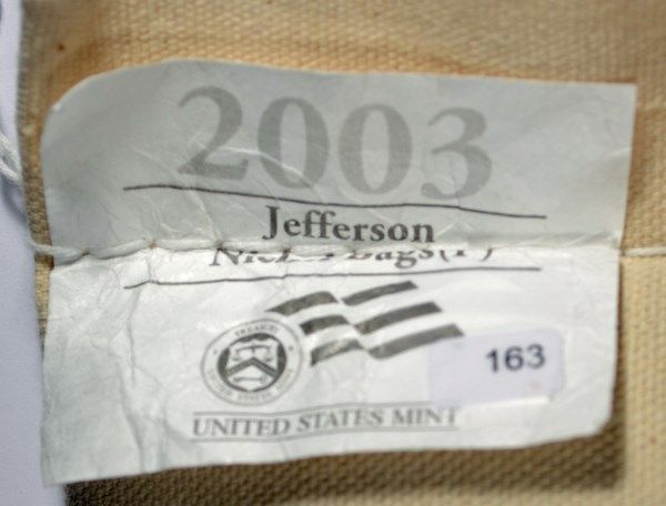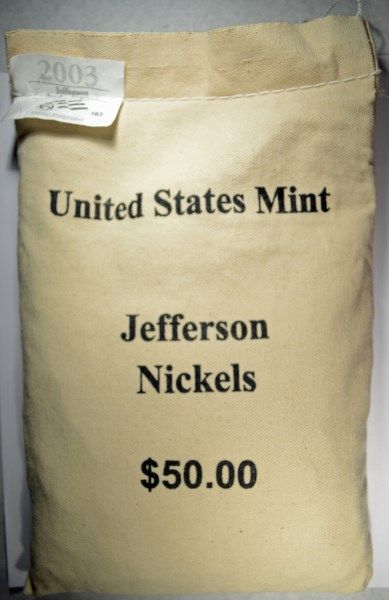 2003-P JEFFERSON NICKEL MINT SEALED BAG, $50.00 FACE BU NICKELS