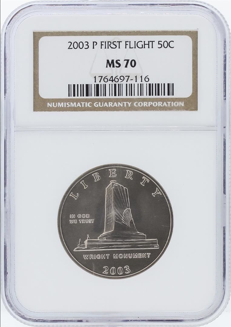 One 2003-P NGC MS70 First Flight Commemorative Half Dollar. NGC Certified.